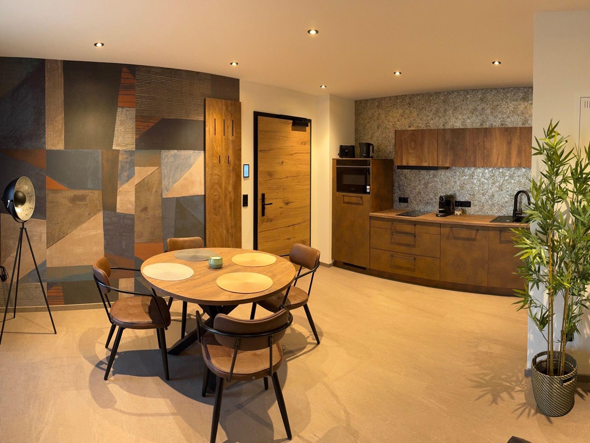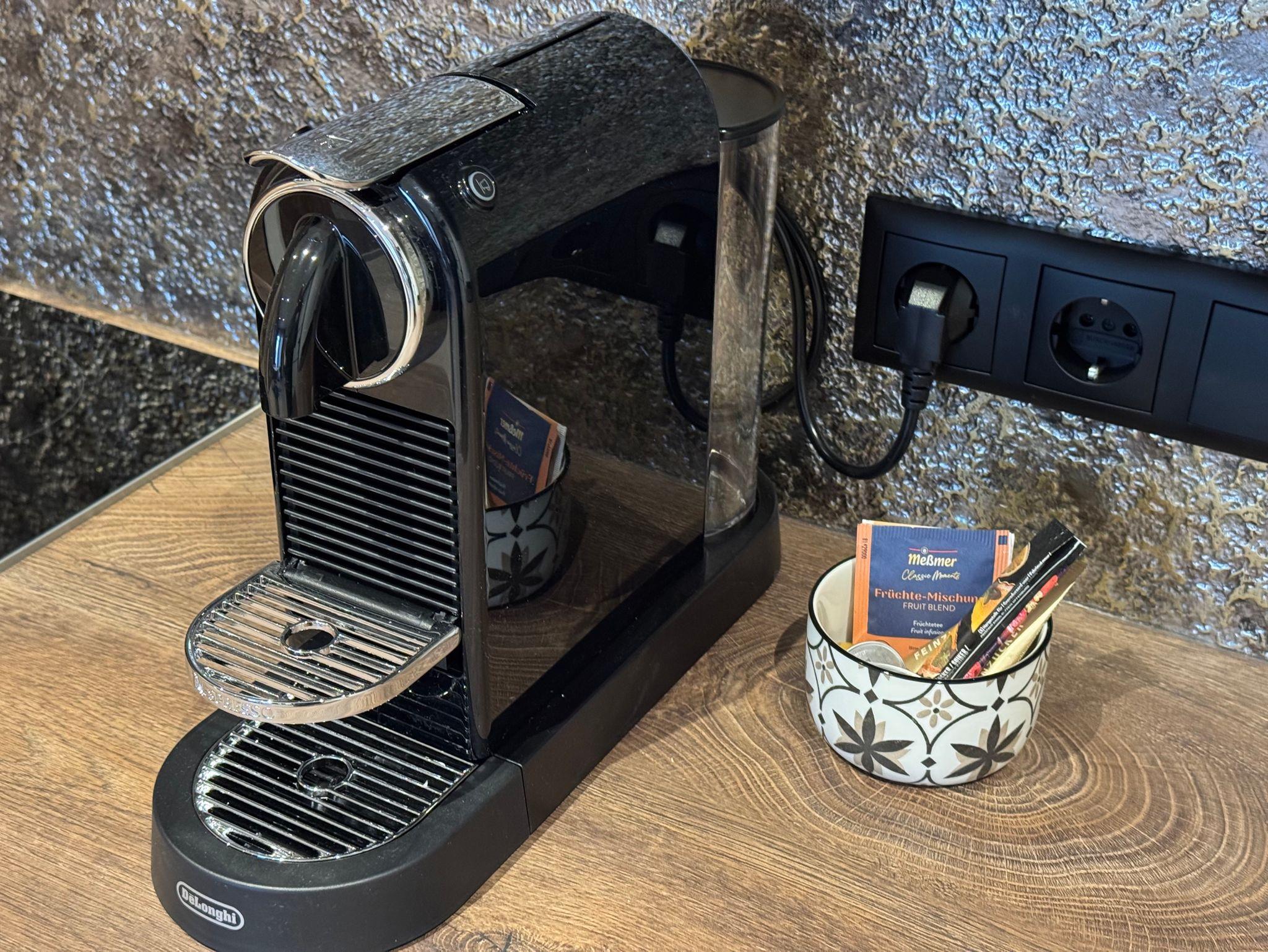 Moderne Komfortküche: Voll ausgestattet mit Geschirrspüler, Nespresso-Maschine, Backofenund Mikrowelle für vollkommene Unabhängigkeit.