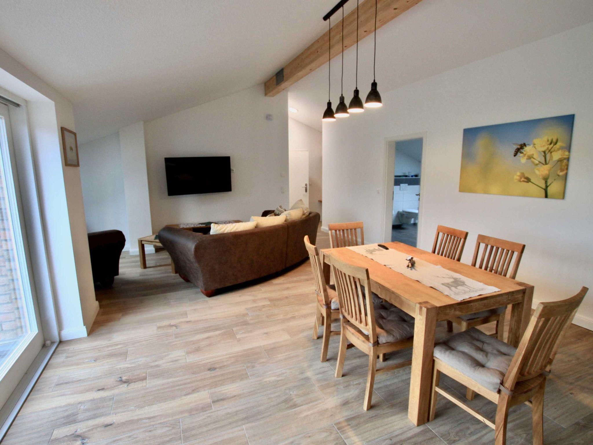 Die Ferienwohnung verfügt über eine Küche mit offenem Wohn- und Essbereich. Schauen Sie beim Abendbrot Fern oder genießen Sie die wundervolle Aussicht.