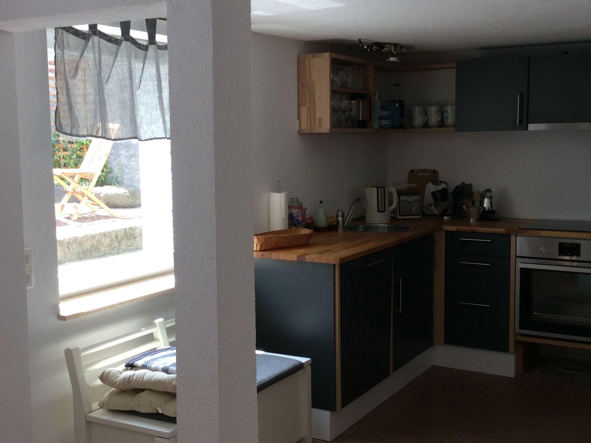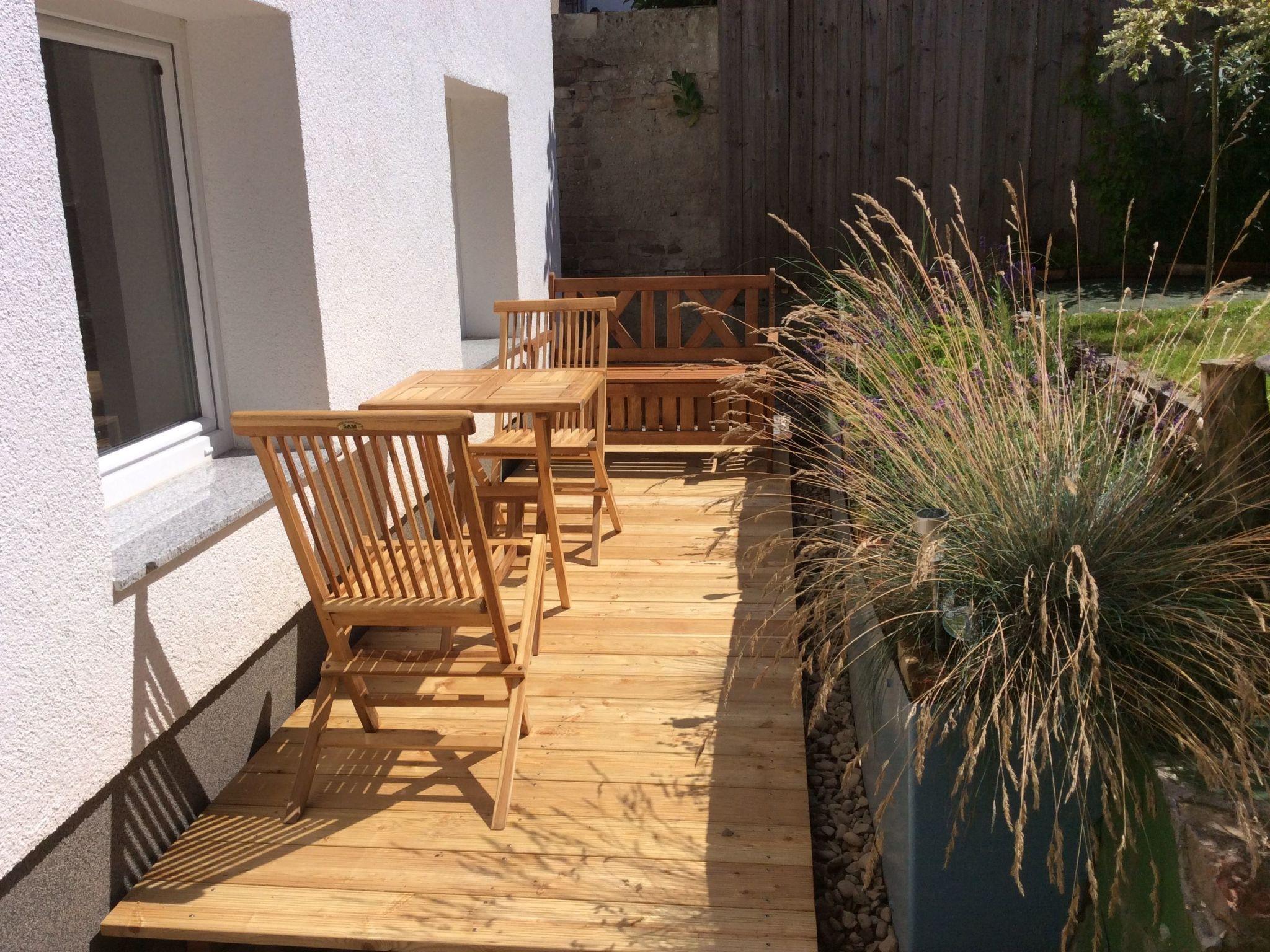 The lovingly tended and fully enclosed garden with its terraces invites you to spend quiet, relaxing moments in a deckchair. Enjoy the seclusion and tranquillity, far away from the hustle and bustle of the city. You will also always find free public parking spaces in the neighbouring street.