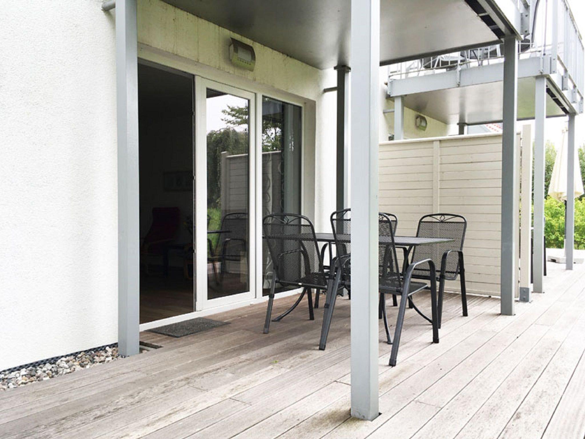 Die Terrasse verfügt über einen Tisch mit vier Stühlen. Sitzkissen und ein Sonnenschirm liegen in der Kammer bereit. Die beiden Schlafzimmer sind mit einem Doppelbett und mit zwei Einzelbetten ausgestattet. Das geräumige Badezimmer verfügt über eine Dusche.
