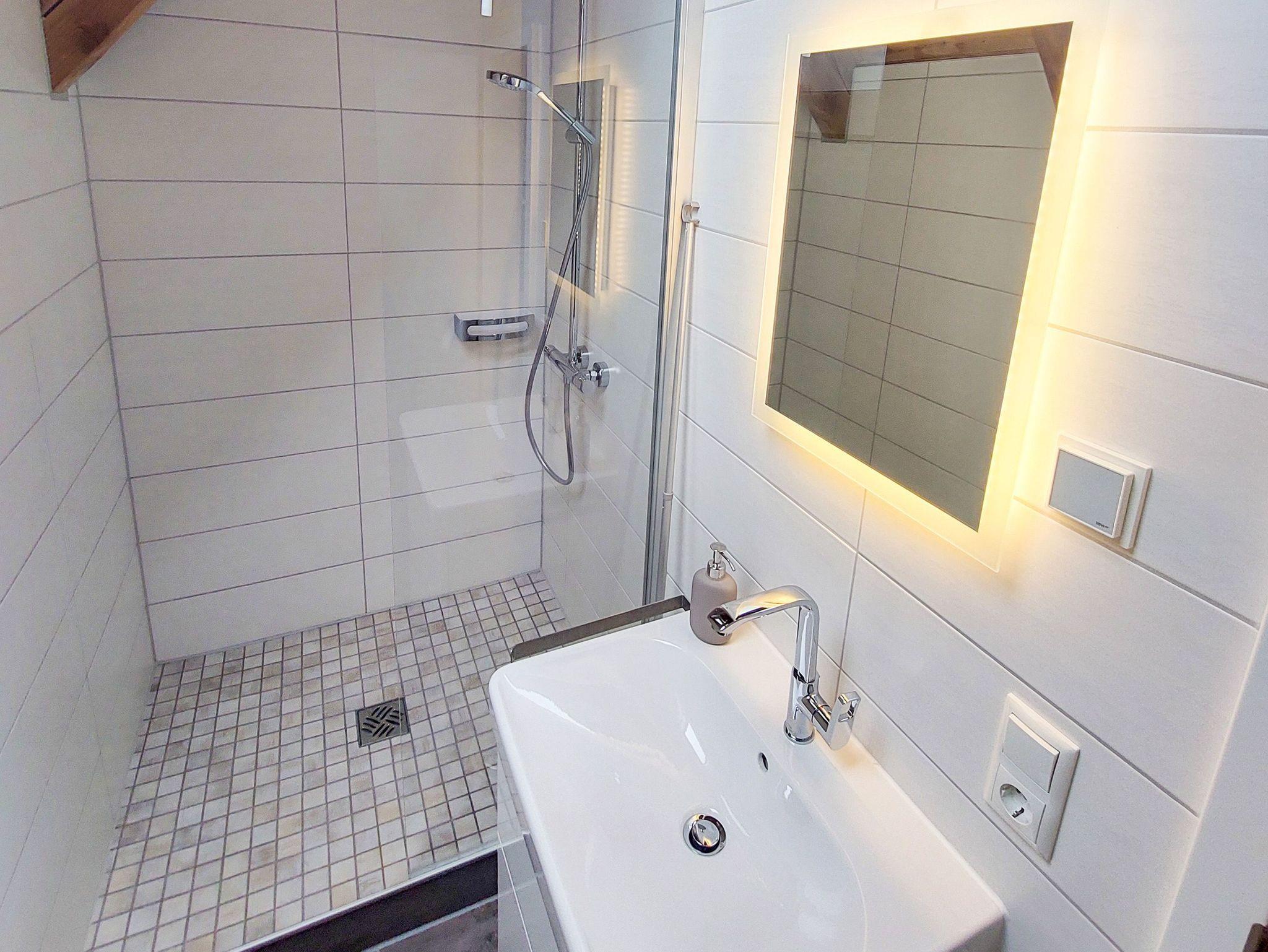 Das Schlafzimmer in Schuster 1 mit einem 1,60 m breiten Boxspringbett sowie die zwei Schlafzimmer in Schuster 2 bieten dir oder deinem Team eine erholsame Nachtruhe. Die modernen Badezimmer mit Regendusche und hochwertigen Handtüchern sorgen für einen frischen Start in den Tag. Für längere Aufenthalte stehen optional Wäschewechsel- und Reinigungsservice zur Verfügung, und bei Bedarf kann eine Wohnungsgeberbestätigung ausgestellt werden.