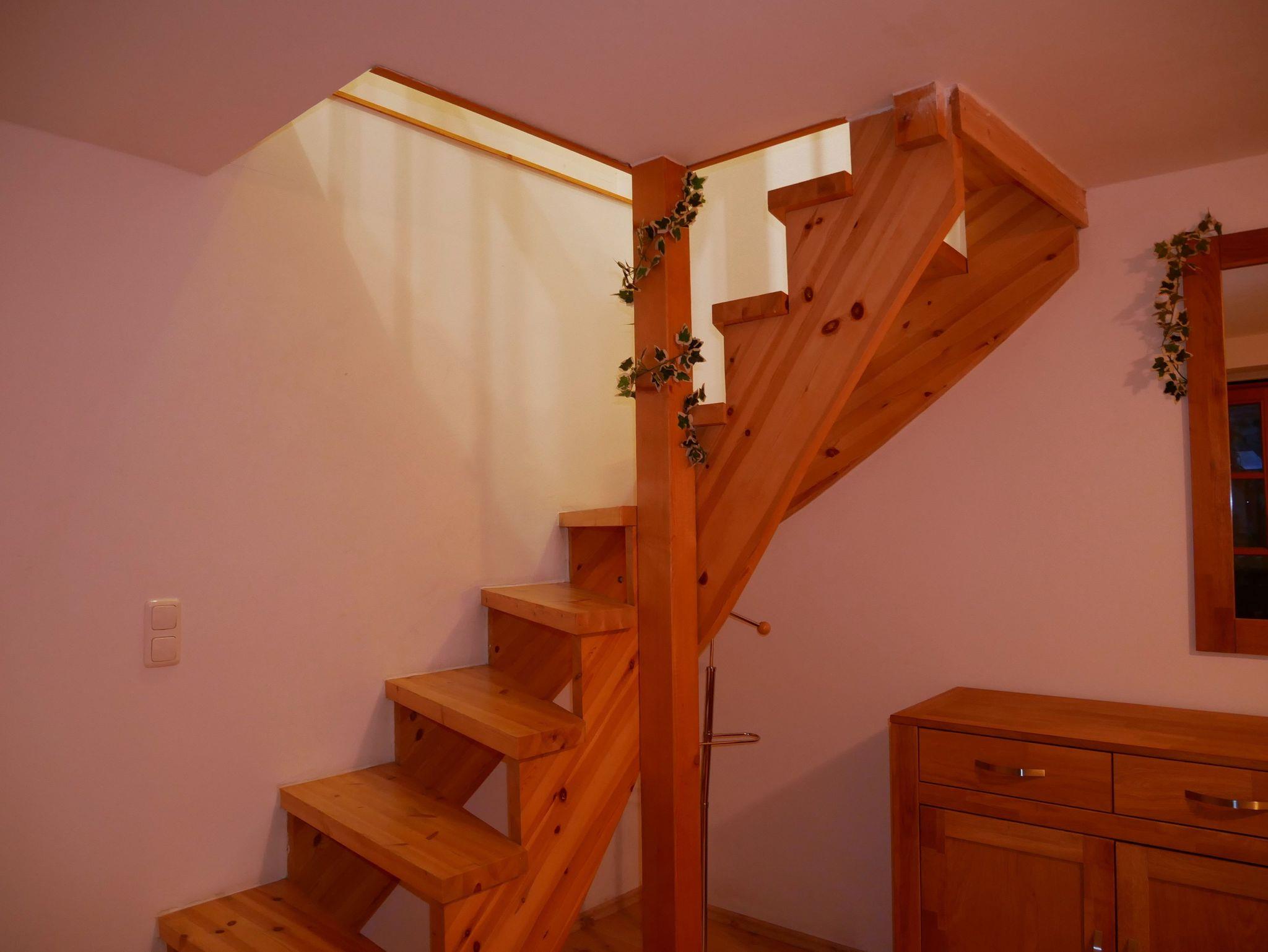 Über eine offene Treppe erreichen Sie die untere Ebene. Dort befindet Sich der Schlafbereich mit Doppelbett (1,80x2,00 Meter). Das Badezimmer ist mit Dusche, Waschbecken und WC ausgestattet.