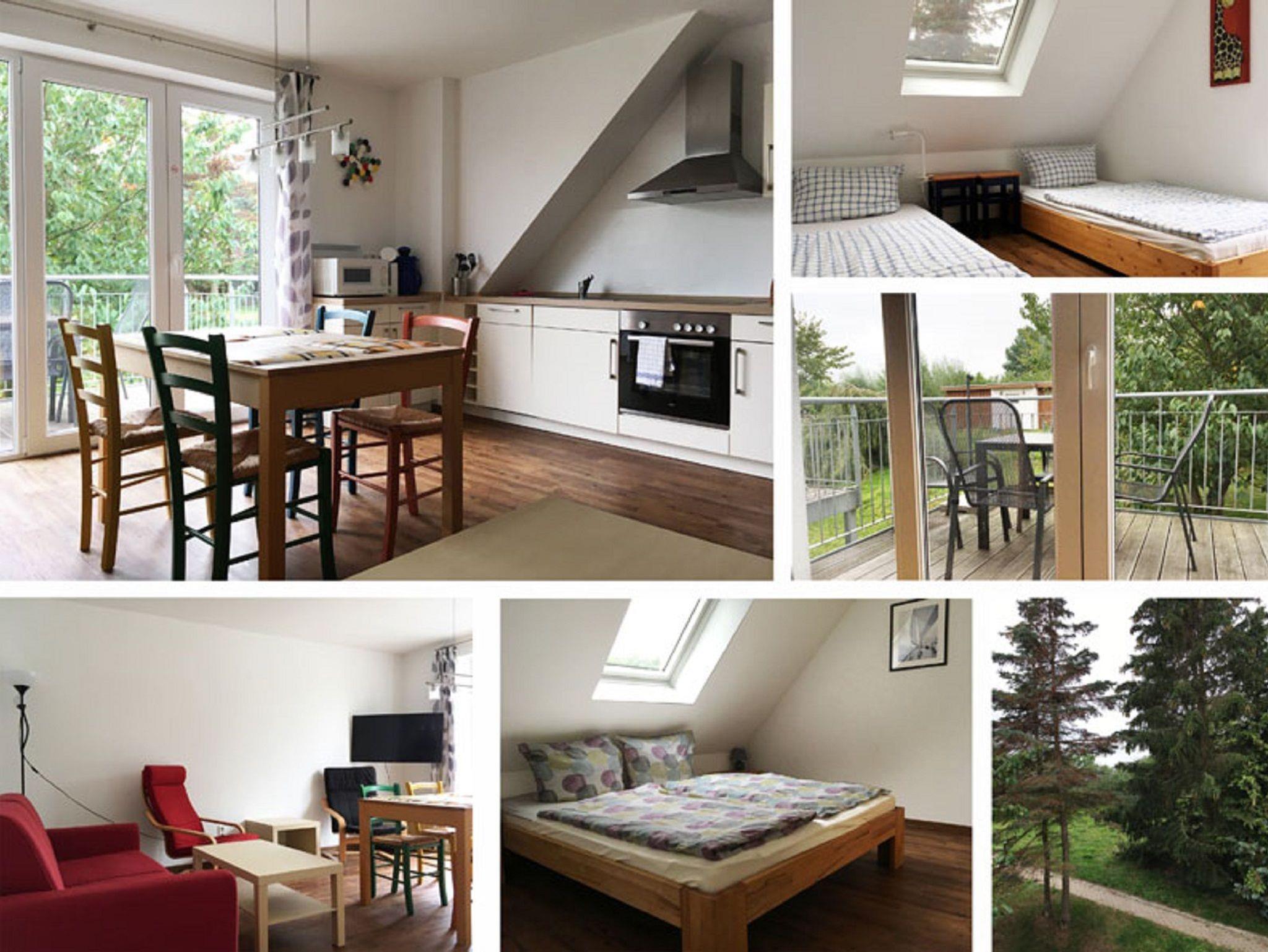 In unseren 4 Ferienwohnungen erwartet Sie ein großer Wohn- und Kochbereich, mit TV, Radio gemütlicher Couch und großem Esstisch. Die offene Küche ist solide ausgestattet. Zwei Schlafzimmer sorgen für erholsamen Schlaf. Von Ihrer geräumigen Terrasse / Balkon können Sie den Blick in den Garten genießen. Ideal für Familien.