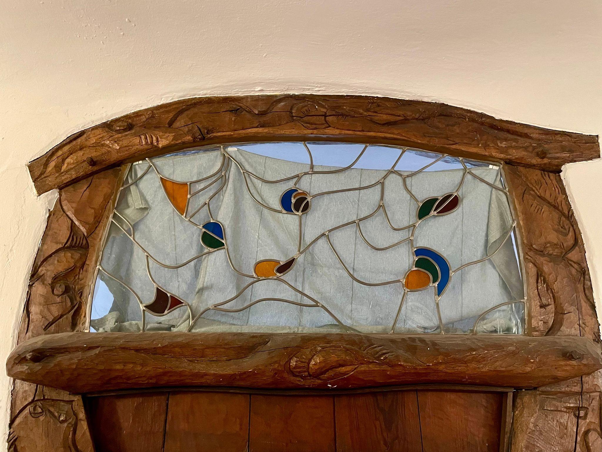 Türreliefs, Deckenmalereien, skulpturale Holzbalken: Original erhaltene Gestaltungselemente beleben den Charakter des expressionistischen Hauses, das Hoetger 1922 baute. Wandeln Sie auf Hoetgers Spuren und erleben Sie die Harmonie zwischen Kunst und Natur in dieser einzigartigen Unterkunft!
