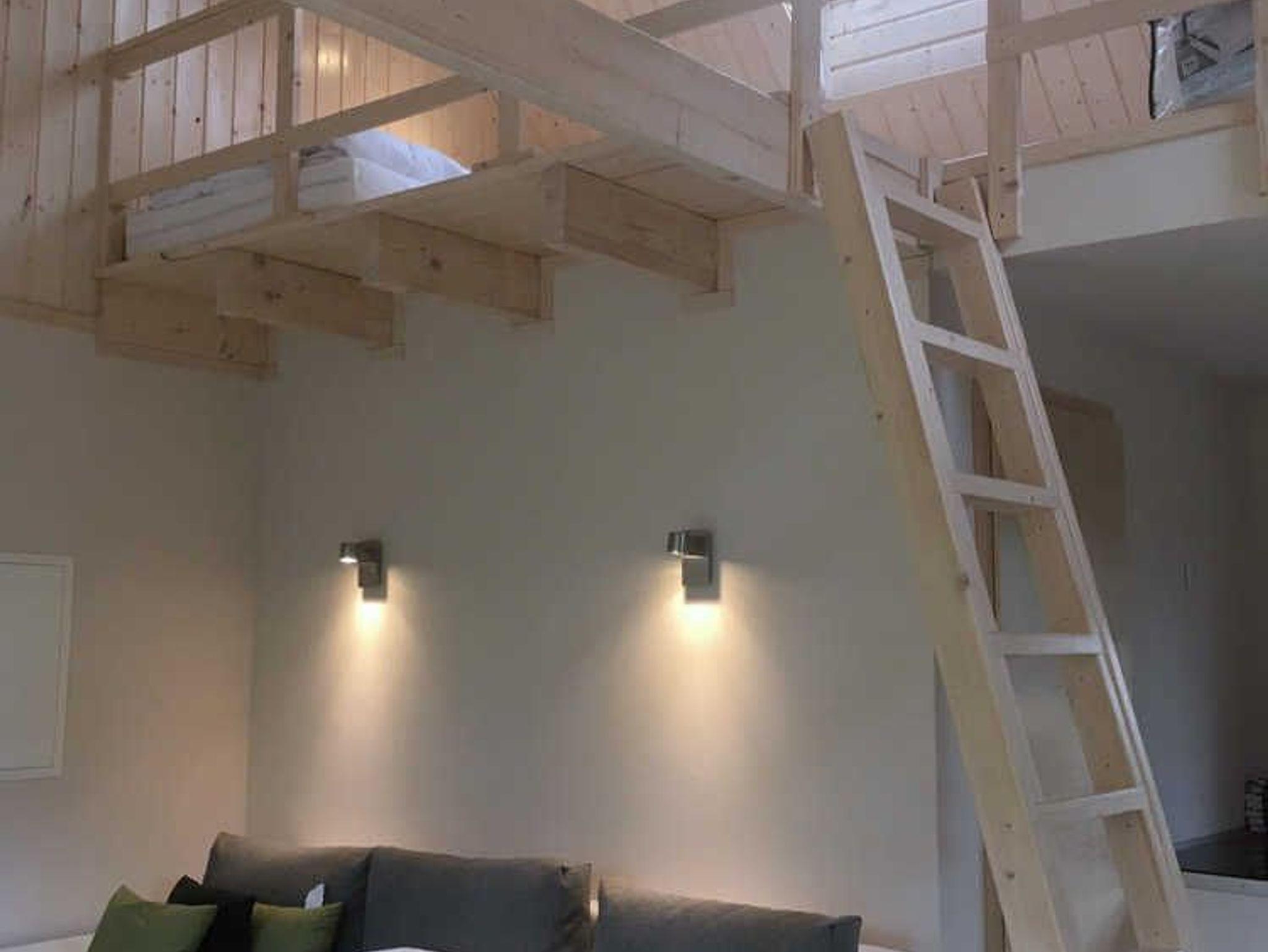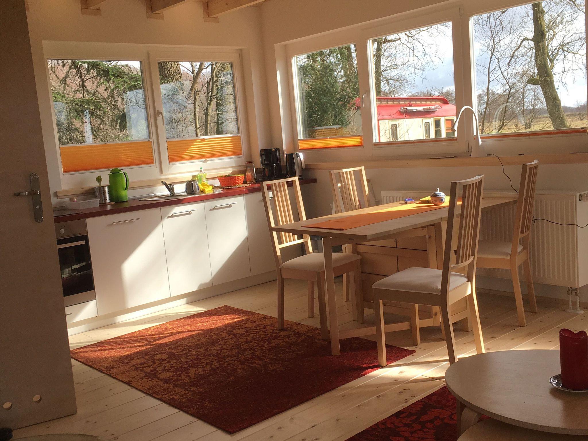 Das Ferienhaus 1 bietet eine einfache, herzensnahe und wohnliche Unterkunft. In jeder der Unterkünfte ist eine Küchenzeile mit E-Herd u Kühlschrank, ein Duschbad und WC, so dass Sie dort vollkommen unabhängig sein können. Diese Ferienwohnung ist absolut tierfrei. Im Erdgeschoss gibt es ein Schlafsofa für zwei Personen und darüber hinaus eine Galerie mit weiteren Schlafmöglichkeiten.
