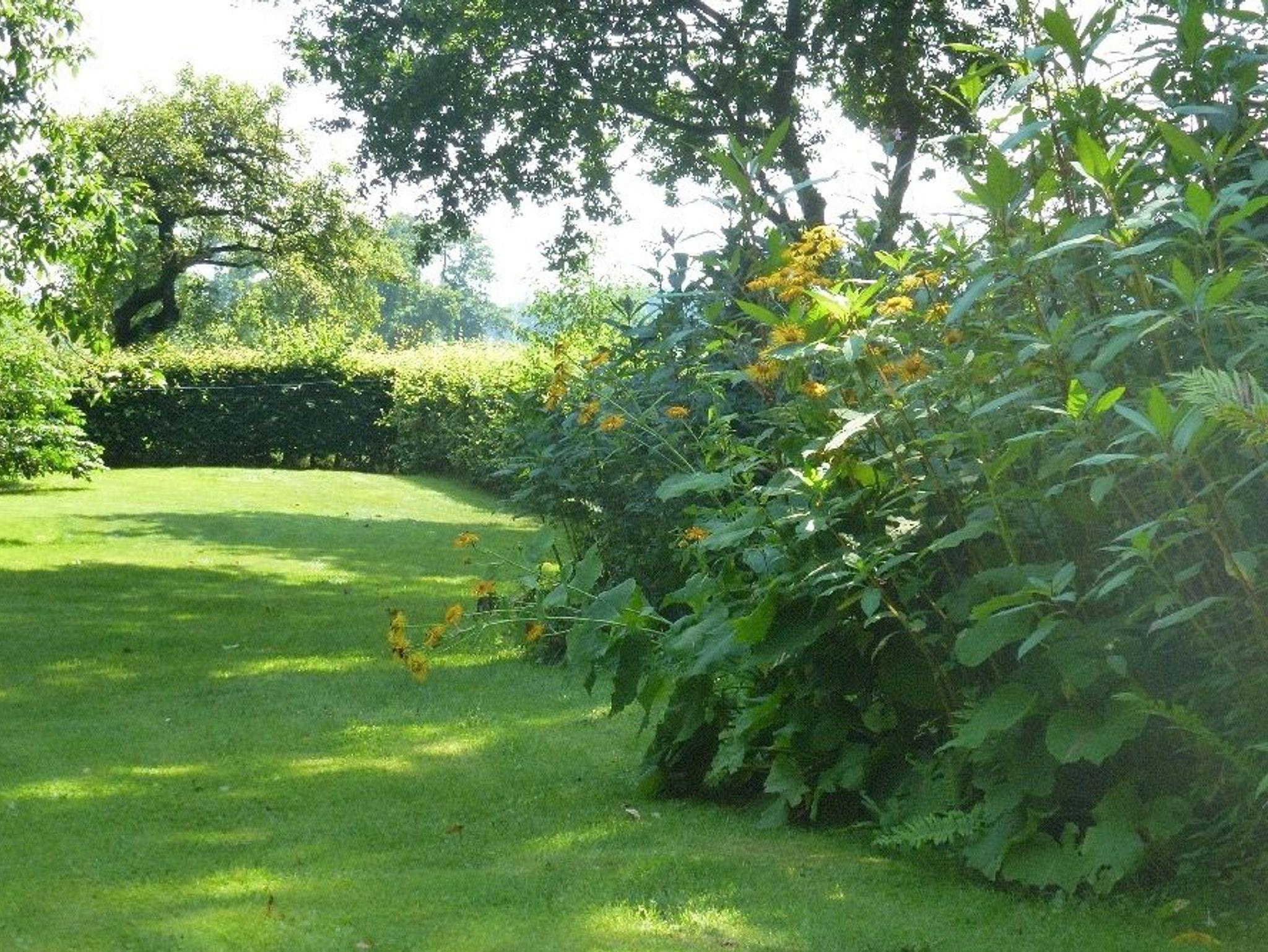 Der Garten ist Teil des Ambientes und kann zum Ausspannen oder gemütlichen Zusammensitzen genutzt werden. Im Haupthaus kann nach Absprache auch der Gruppenraum genutzt werden. Z. B. zum Meditieren oder Musizieren auf dem Flügel.