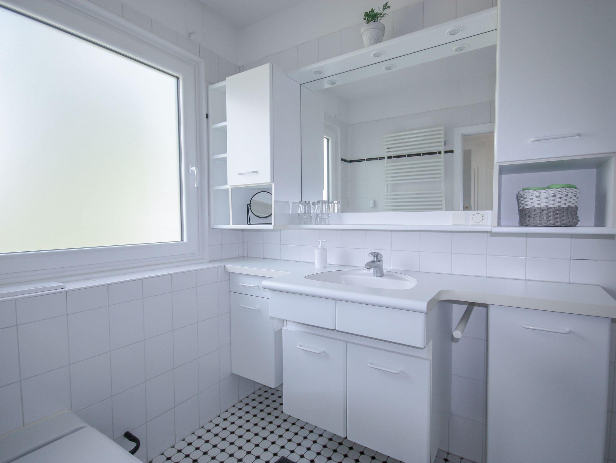 Empfangen werden Sie von einem geräumigen Flur, der über eine Garderobe verfügt. Das helle Tageslichtbadezimmer verfügt über eine Badewanne mit Duschkabine, eine Waschtisch mit praktischen Ablagefächern sowie einem Handtuchheizkörper.