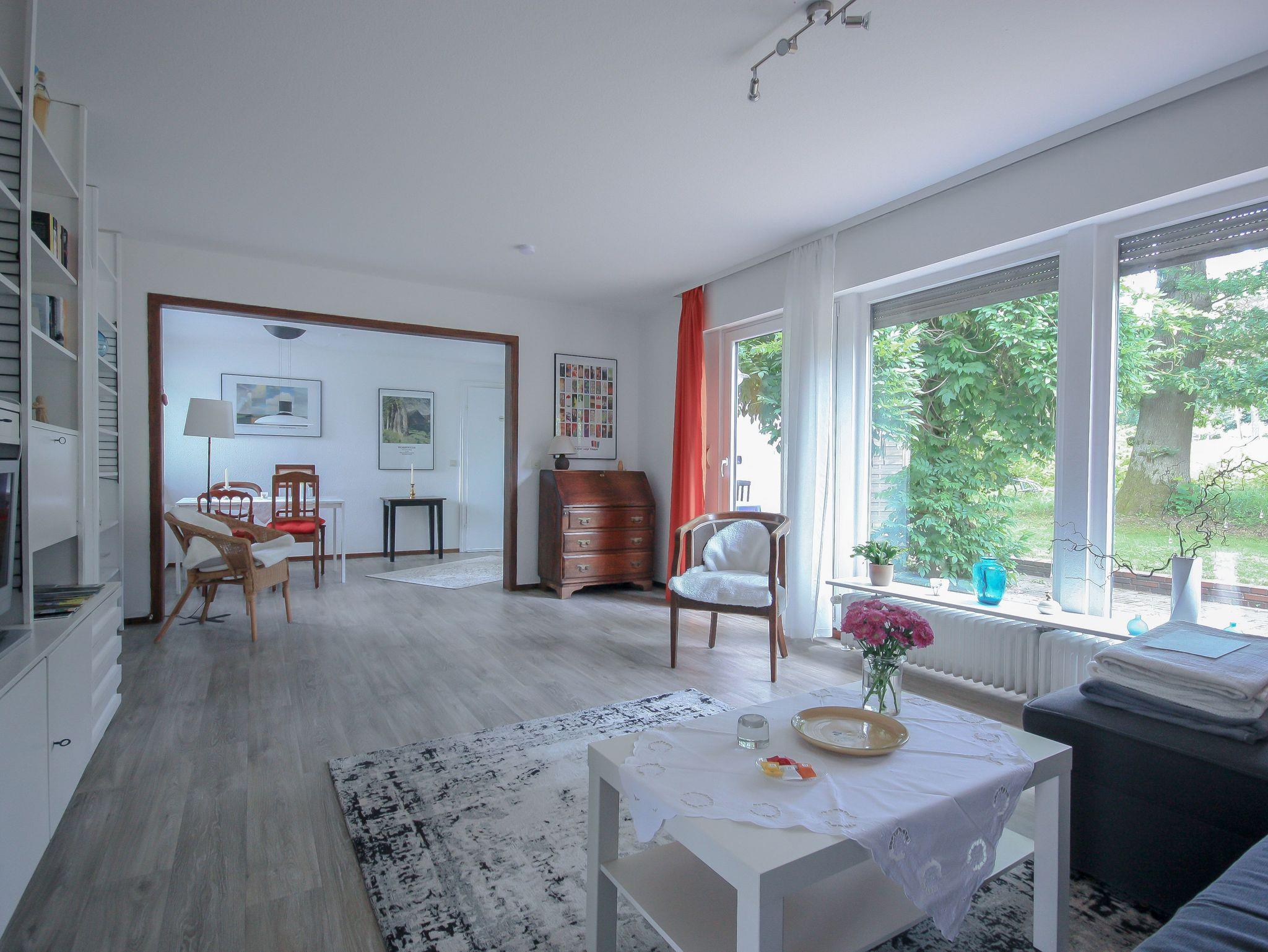 Das Herzstück der Ferienwohnung ist das hervorragend dimensionierte Wohn- und Esszimmer. Durch die große Fensterfront ist dieser Bereich nicht nur lichtdurchflutet,sonder gewährt Ihnen auch Zugang auf die Terrasse, welche direkt an die Marcusheide grenzt und einen einmaligen und unverwechselbaren Blick in die traumhafte Natur gewährt.