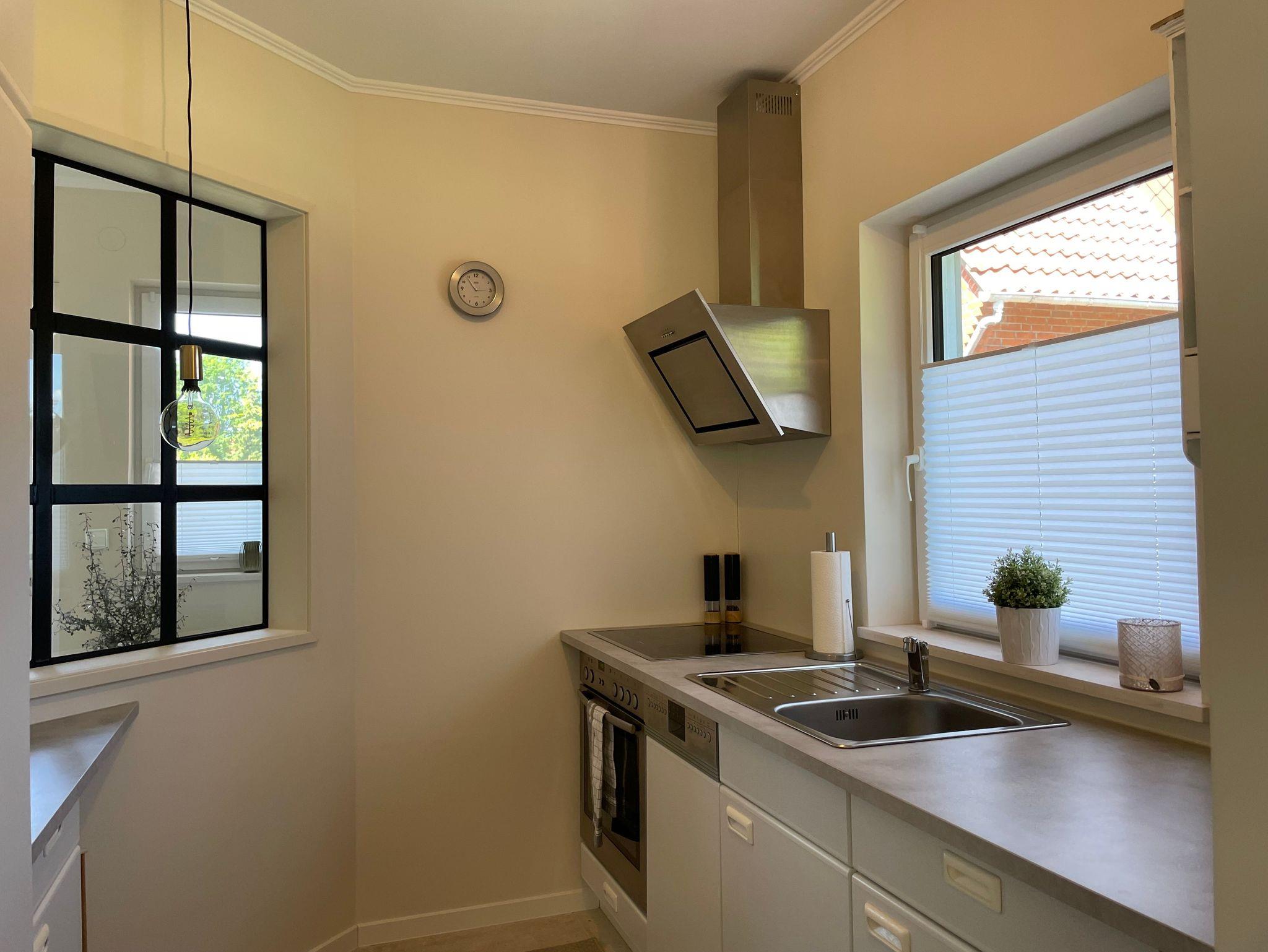 Das 2021 neu sanierte Ferienhaus steht zur Alleinnutzung mit seinen 54m² zur Verfügung. Mittelpunkt des Ferienhauses ist der großzügige mit Echtholzboden ausgestattete Wohn-und Essbereich. Angegliedert ist eine komplett eingerichtete Küche mit Umluft- Backofen, Cerankochfeld, Kühl-/ Gefrierschrank und Spülmaschine. Das tageslichthelle Badezimmer ist mit ebenerdiger Dusche/ WC ausgestattet, Föhn und Kosmetikspiegel sind vorhanden. Im hauseigenen Abstellraum befindet sich eine Waschmaschine. Über eine Raumspartreppe ( nicht für gehbehinderte Personen geeignet ) erreichen Sie das Schlafzimmer mit Doppelbett ( 1,80 x 2,00 m ) und Blick ins Grüne. Auch ein eigener Garten mit Terrasse und Möglichkeit zum Grillen gehört mit dazu. Alle Fenster im Ferienhaus sind mit einem Insektenschutzgitter versehen.
