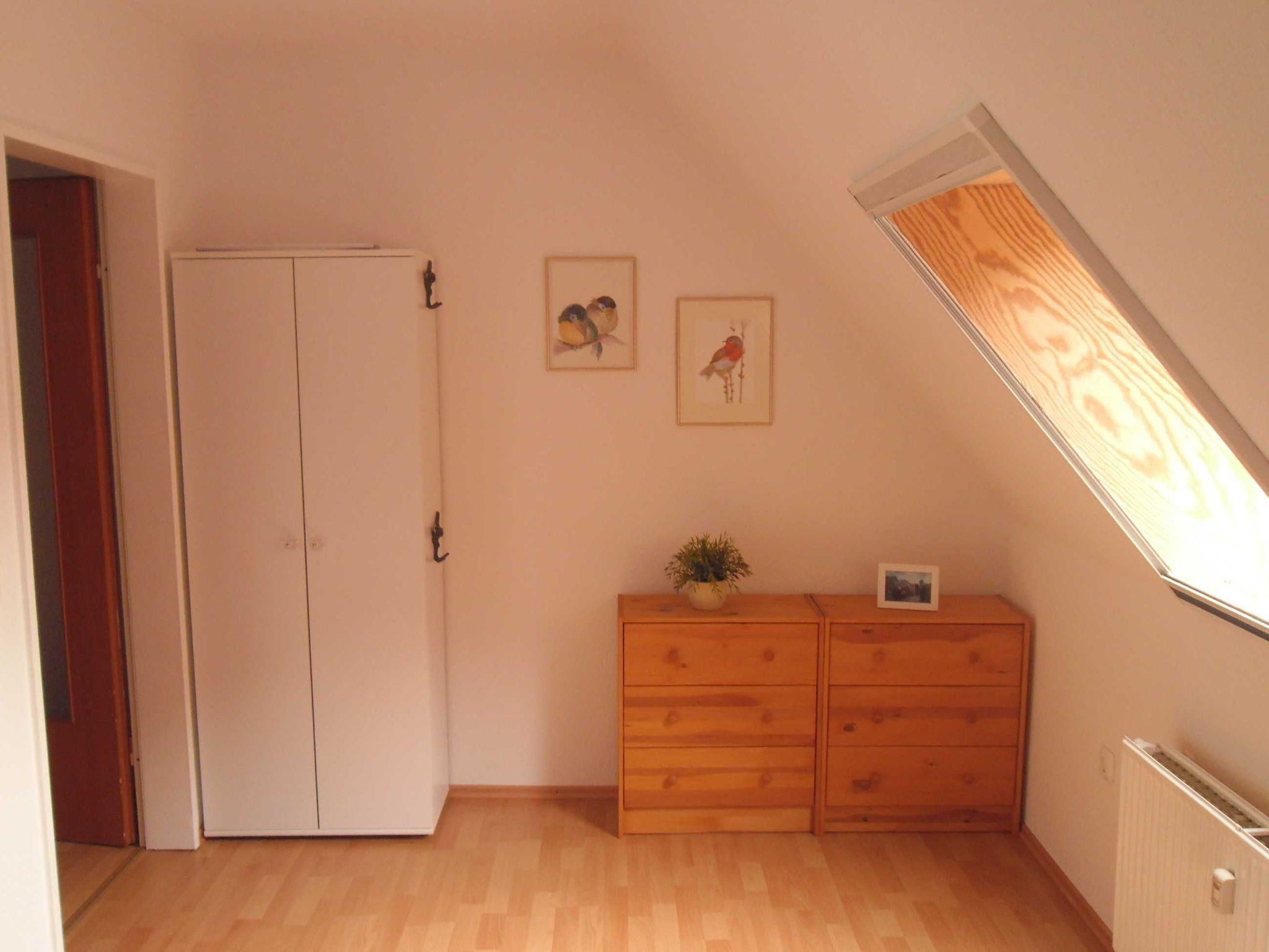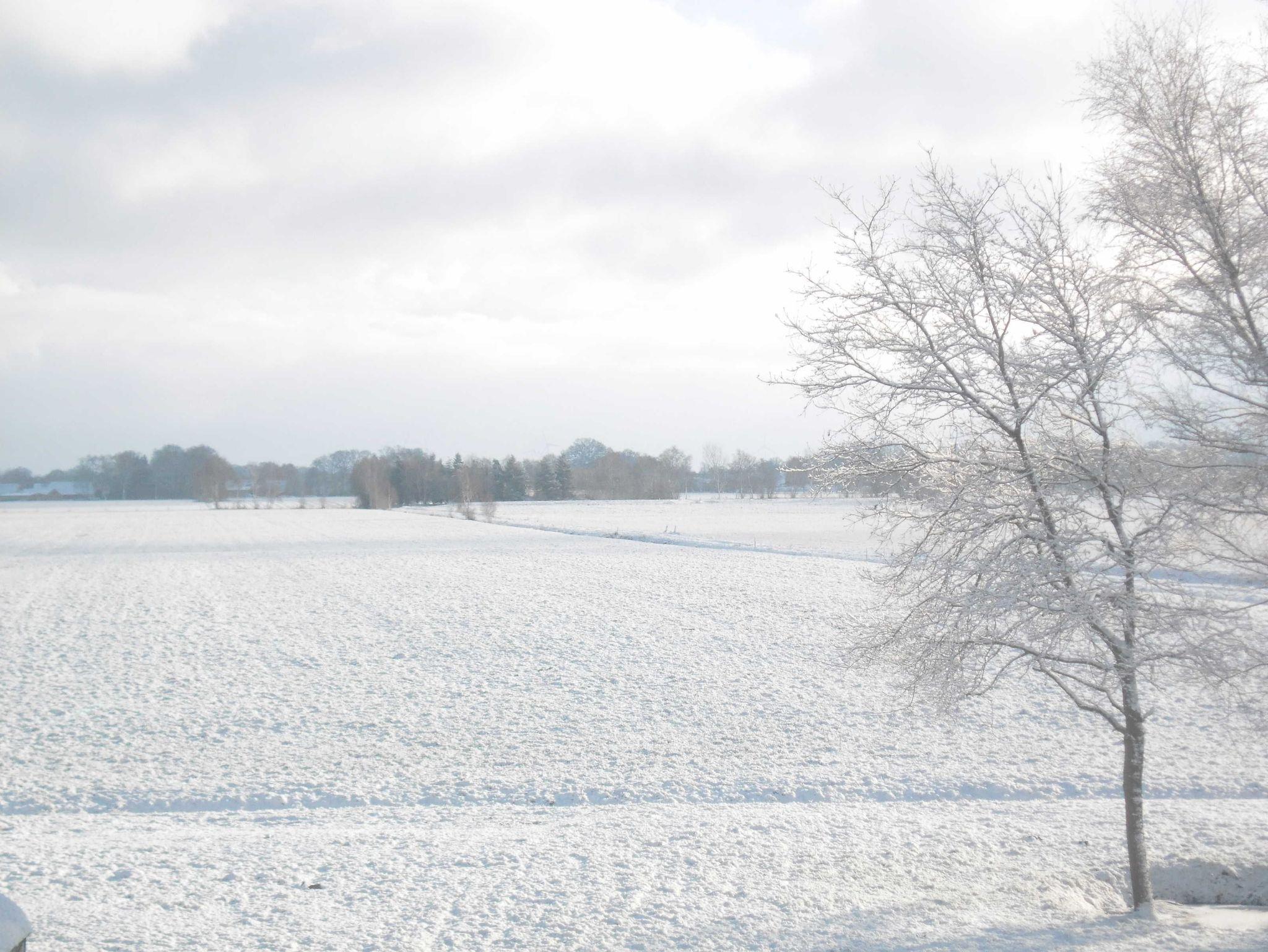 Jedes Fenster der Ferienwohnung lädt die Augen zu einem Blick ins Grüne ein. Erfreuen Sie sich am weiten Ausblick. Beobachten Sie die vielfältige Vogelwelt, Rehe, Hasen sowie im Frühjahr und Herbst die Kraniche, die sich auf dem Feld hinter dem Haus aufhalten.