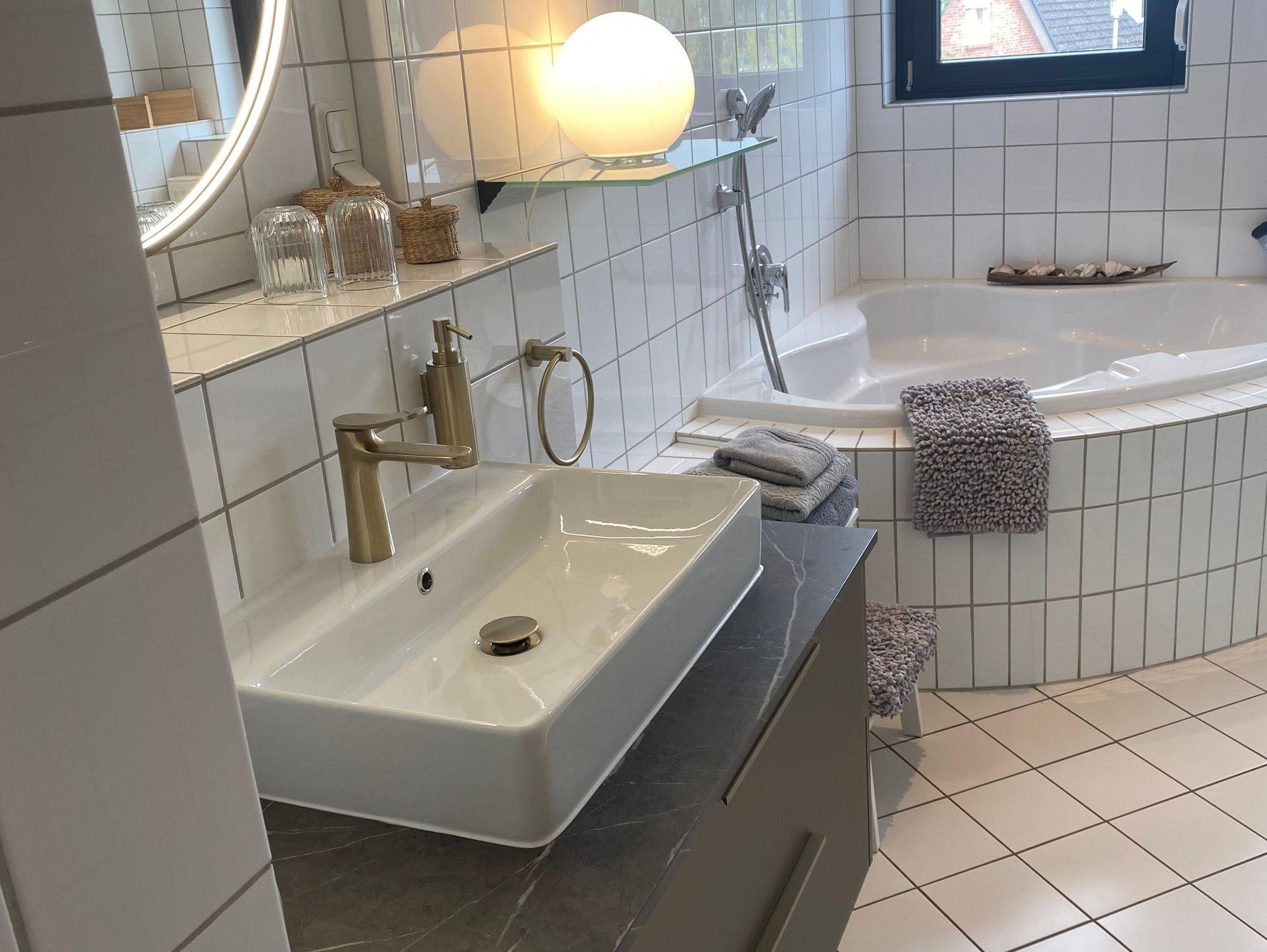 Sie wohnen in einer renovierten gemütlichen Wohnung im Obergeschoss eines Einfamilienhauses. Sie haben ein Wohnzimmer ein Schlafzimmer mit Doppelbett, ein großes Bad mit Dusche und Eckbadewanne, eine separate Küche mit Waschmaschine, Trockner und verfügen über die komplette Küchenausstattung mit einem Kaffee Vollautomaten von DeLonghi, so wie ein zweites Schlafzimmer mit einer Schlafcouch. Das Haus befindet sich schräg gegenüber dem Kunstcentrum Alte Molkerei.
