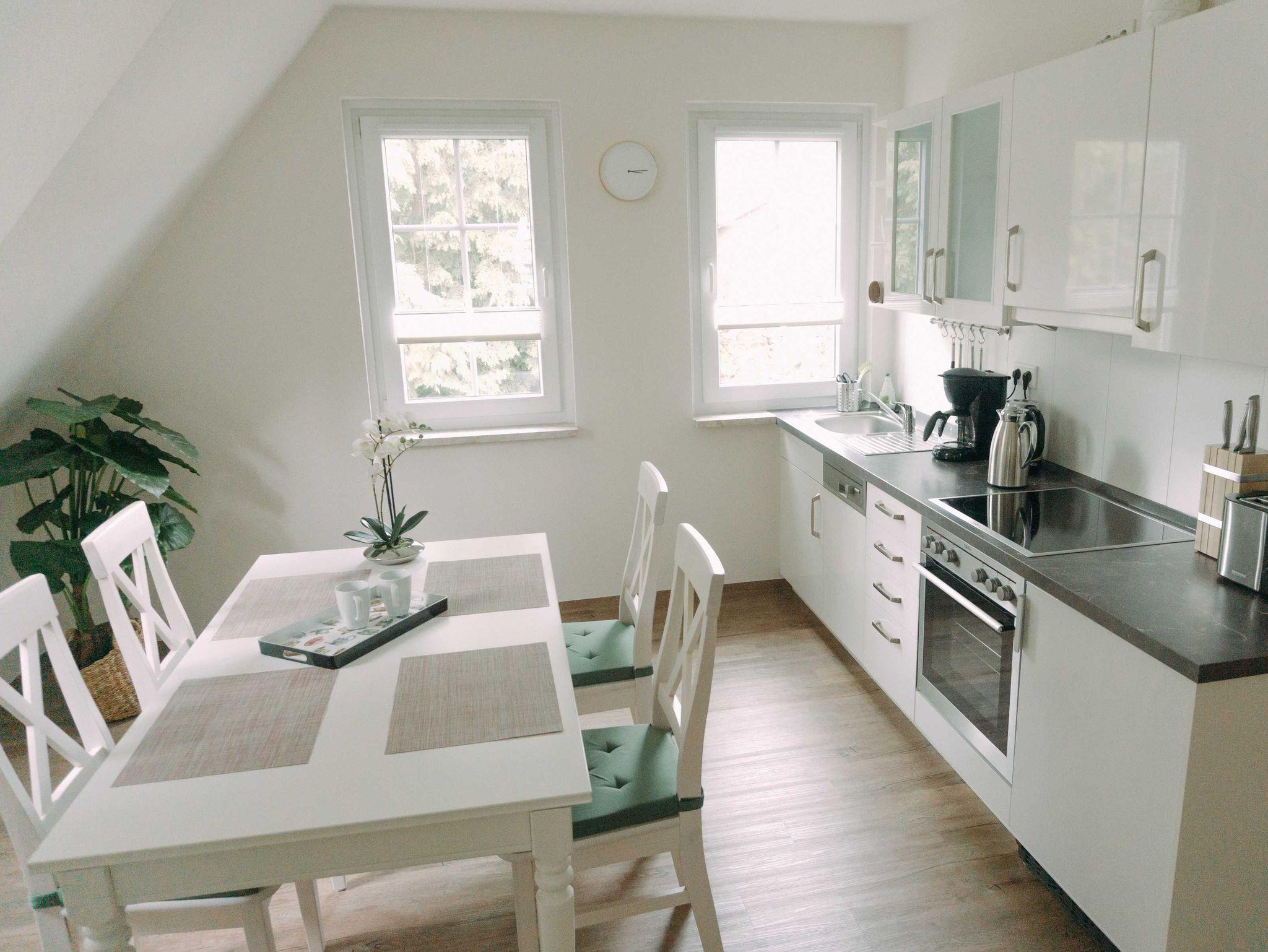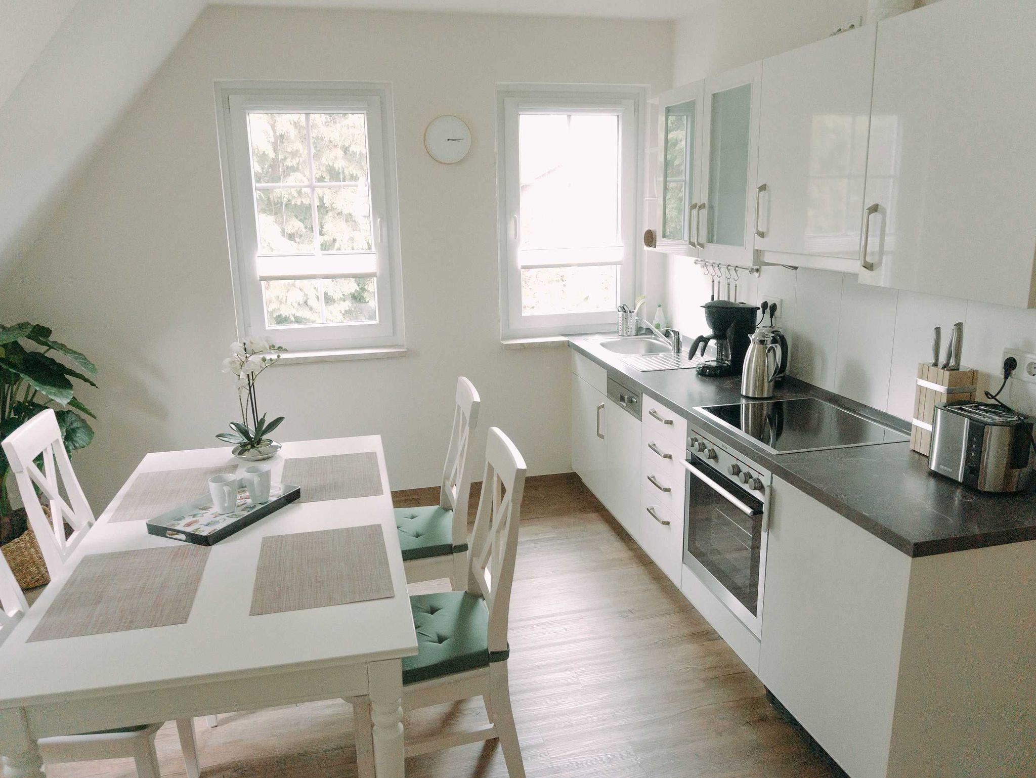 Unsere charmante, im September 2018 fertig gestellte Ferienwohnung im Herzen Worpswedes wartet auf Sie! Die 80 m² große 2-Zimmer Ferienwohnung verfügt über eine komplett ausgestattete, offene Küche, Wohnzimmer mit Schlafsofa (2 Per., Breite 1,40 m), separates Schlafzimmer mit Doppelbett (1,80 m) und ein Duschbad mit Waschmaschine.