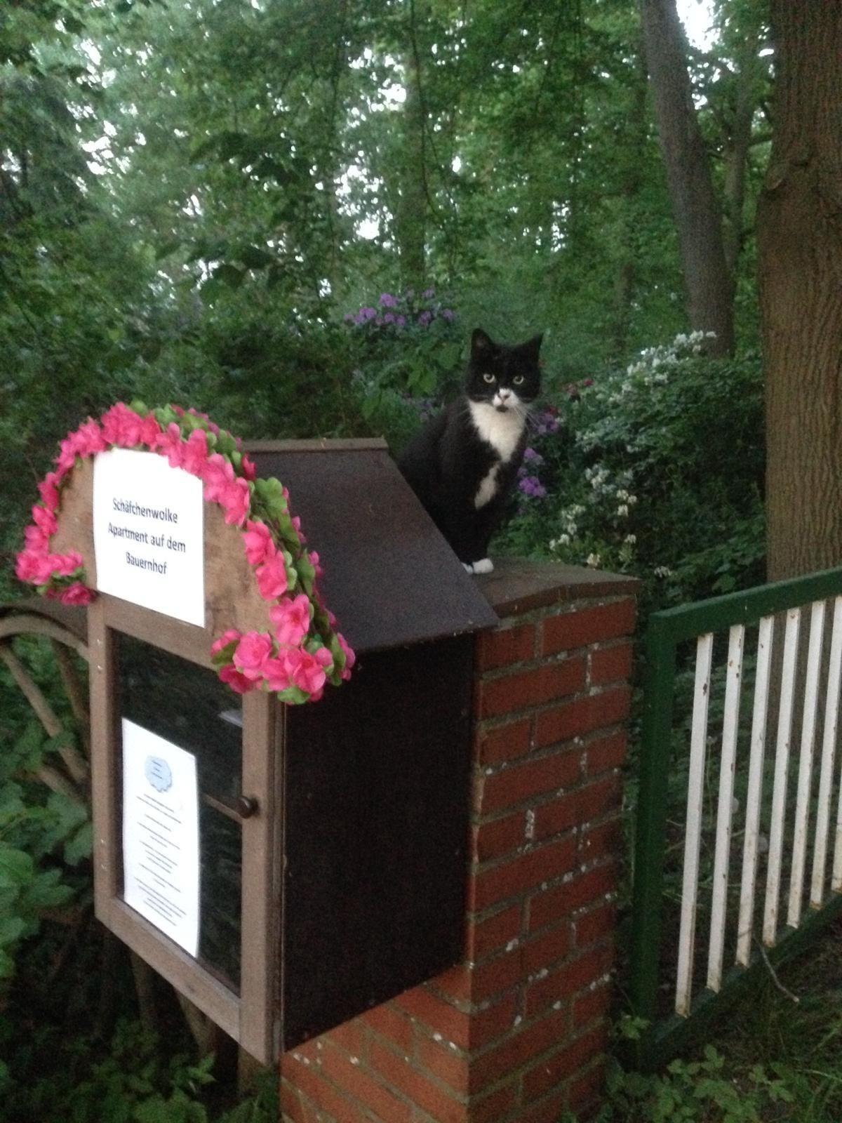 Wir leben auf dem Hof Schafen, einer Ziege, Katzen und unserem Hund Elli.