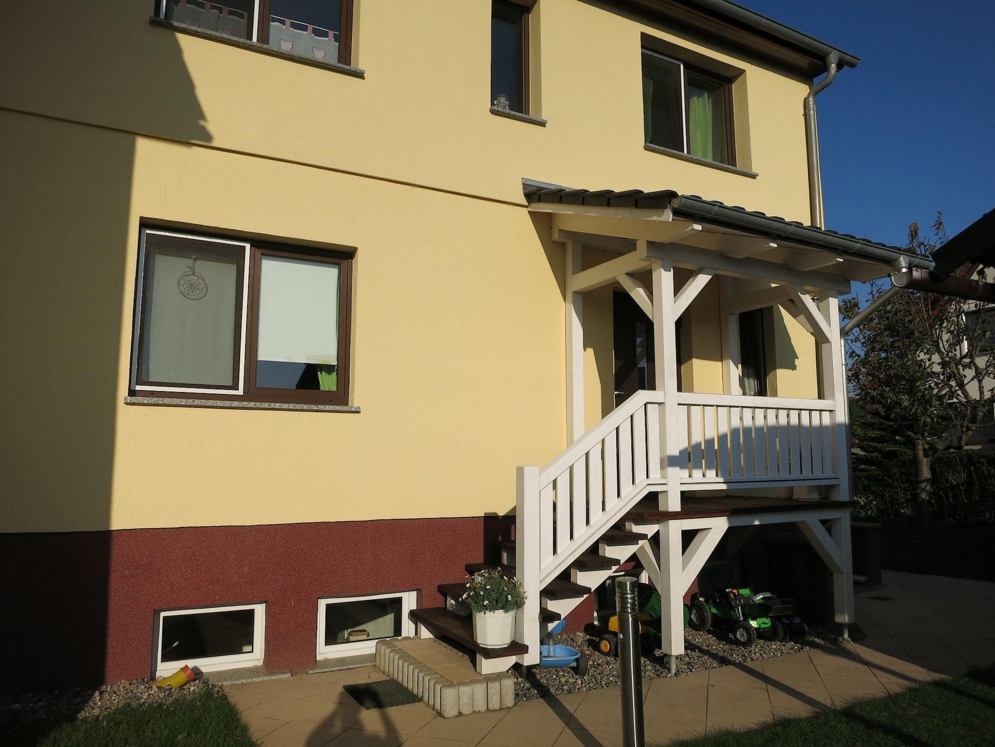 Eine großzügige Nichtraucher-Ferienwohnung befindet sich im Obergeschoss unseres Hauses und ist nur über eine Treppe erreichbar. Das Wohnzimmer ist mit Kaminofen und Parkettfußboden ausgestattet. Hier befinden sich eine große Eckcouch für kuschelige Kamin- und Fernsehabende. Zusätzlich befinden sich dahinter 2 Schlafsofas für je einen Erwachsenen. Das Bad hat eine Fußbodenheizung, Badewanne und Dusche. Es gibt ein kleines Ankleidezimmer mit großem Kleiderschrank, Schreibtisch und Sessel, durch welches Sie über eine Treppe auf den Dachboden gelangen. Hier geht es kuschelig zu. Dort befinden sich in niedriger Raumhöhe (ca. 1.75 m an höchster Stelle des Spitzdaches) ein Schlafzimmer mit Doppelbett sowie ein Schlafzimmer mit einem Kinderbett (Länge 1,30 m). Im Bett liegend können Sie durch die Dachfenster den Sternenhimmel bewundern.