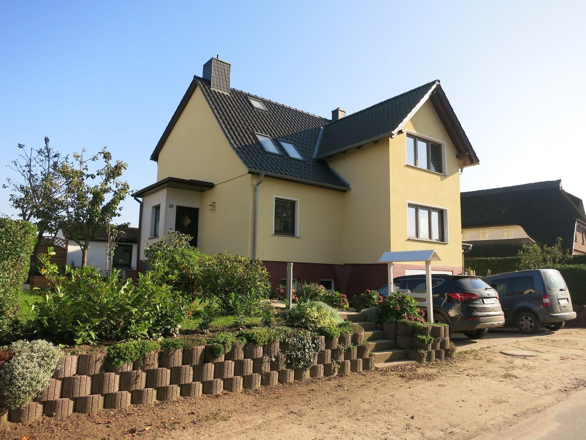 Mitten im Biosphärenreservat Südost-Rügen erwartet Sie eine hochwertige Ferienwohnung mit gemütlichem Wohnzimmer, Kaminofen und Parkettfußboden in der 1. Etage. Die vollausgestattete Küche fügt sich mit dem Esstisch harmonisch in das Wohnzimmer ein. Daneben befindet sich ein Schlafzimmer mit Doppelbett. Ein weiteres Schlafzimmer mit zwei Einzelbetten, die auch zusammenschiebbar sind, befindet sich auf dem Dachboden ( Deckenhöhe in der Spitze ca 1,65m). Das großzügige Bad ist mit Fußboden, Badewanne und Dusche hell und freundlich eingerichtet.