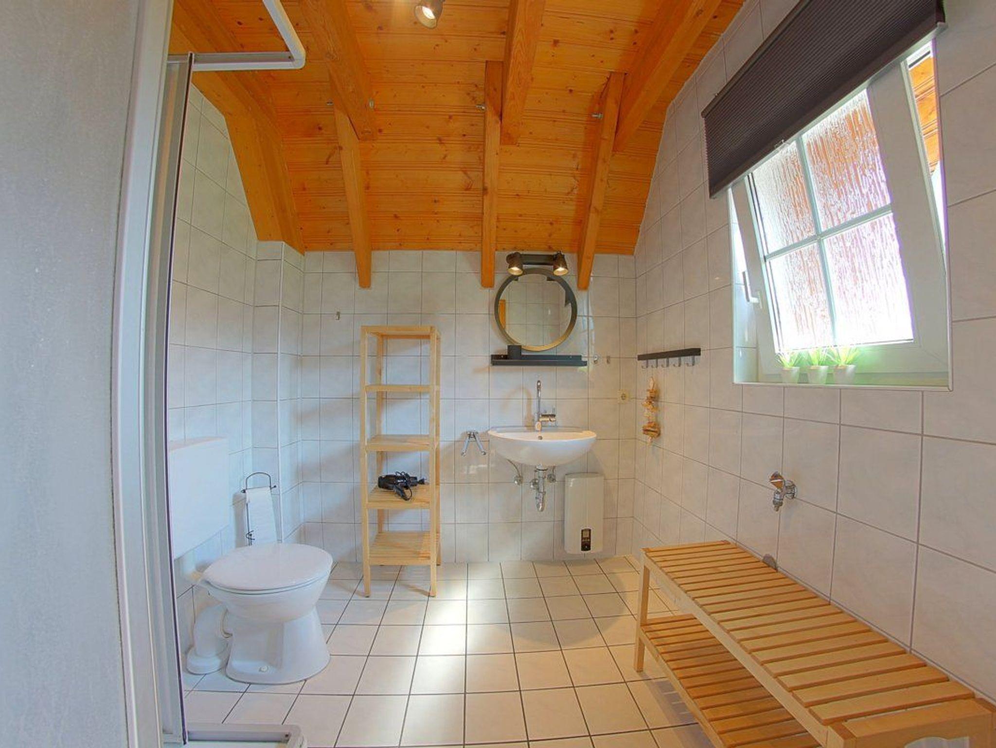 Das Badezimmer mit Dusche befindet sich im Erdgeschoss, ein 2. WC ist im Obergeschoss vorhanden.
