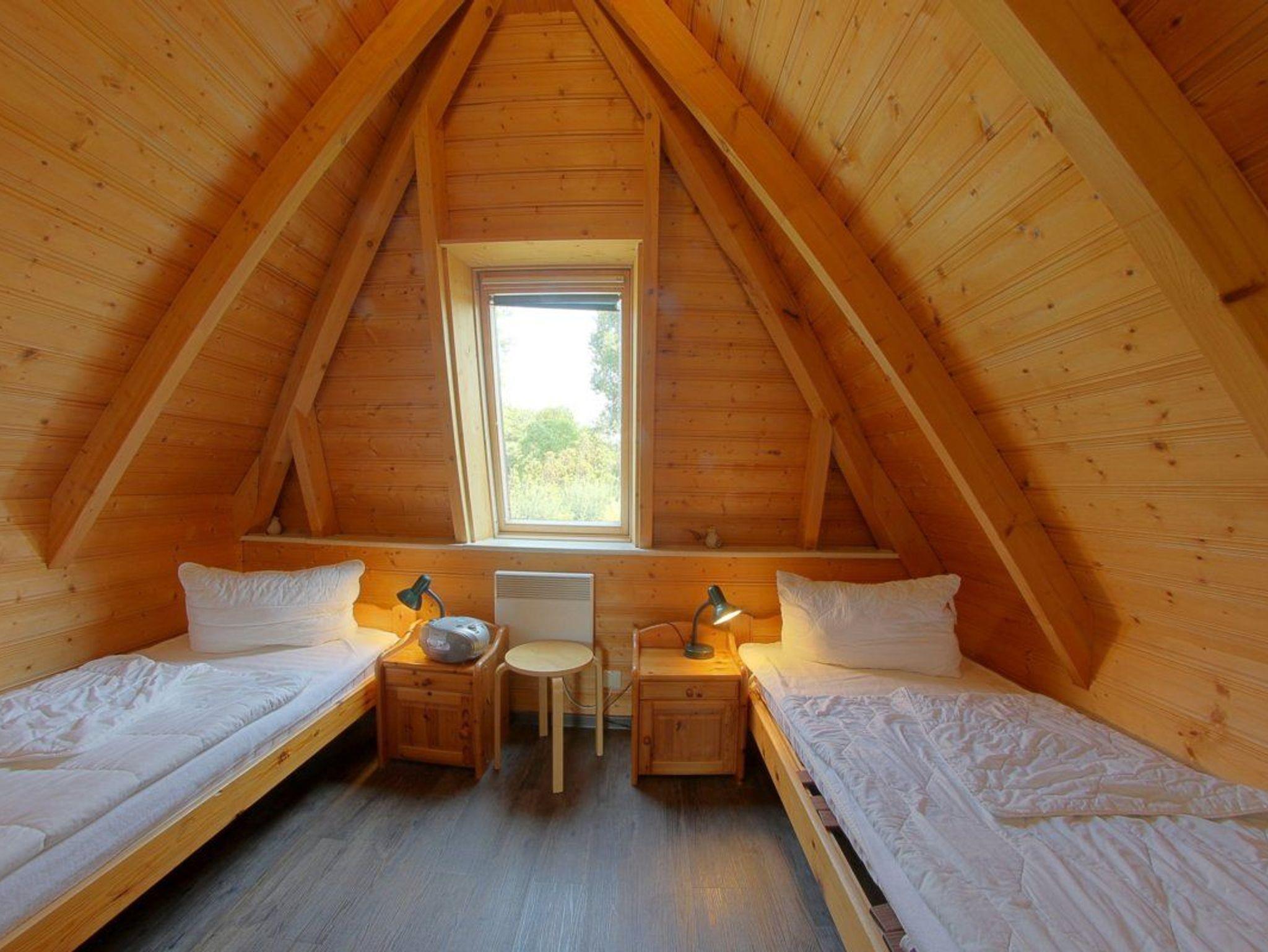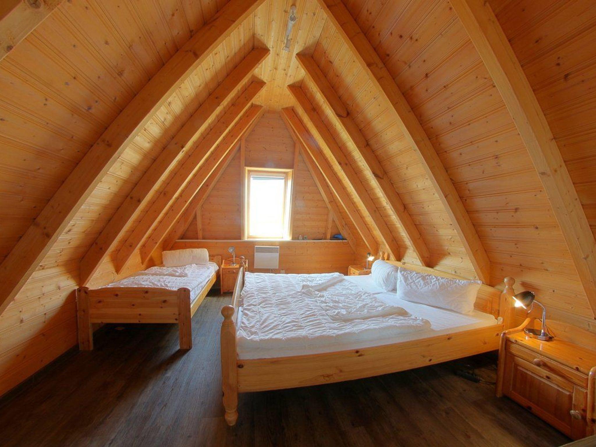 Im Obergeschoß gibt es ein Schlafzimmer mit Doppelbett, Einzelbett und TV, sowie ein zweites Schlafzimmer mit 2 Einzelbetten. Fußböden mit Vinylbelag. Ein WC ist ebenfalls im oberen Bereich vorhanden. Ein Babyreisebett und Treppenschutzgitter oben sind auch vorhanden.