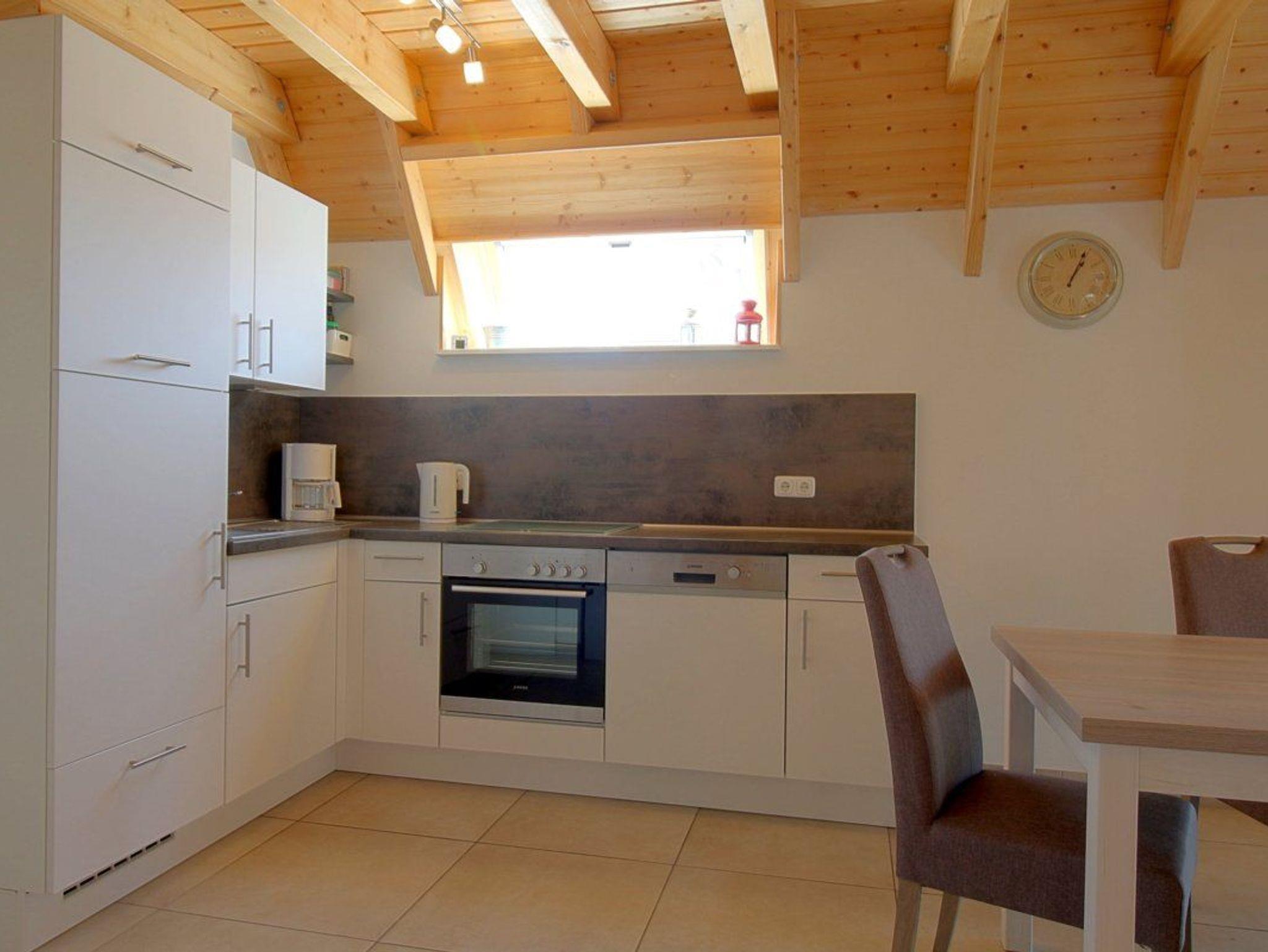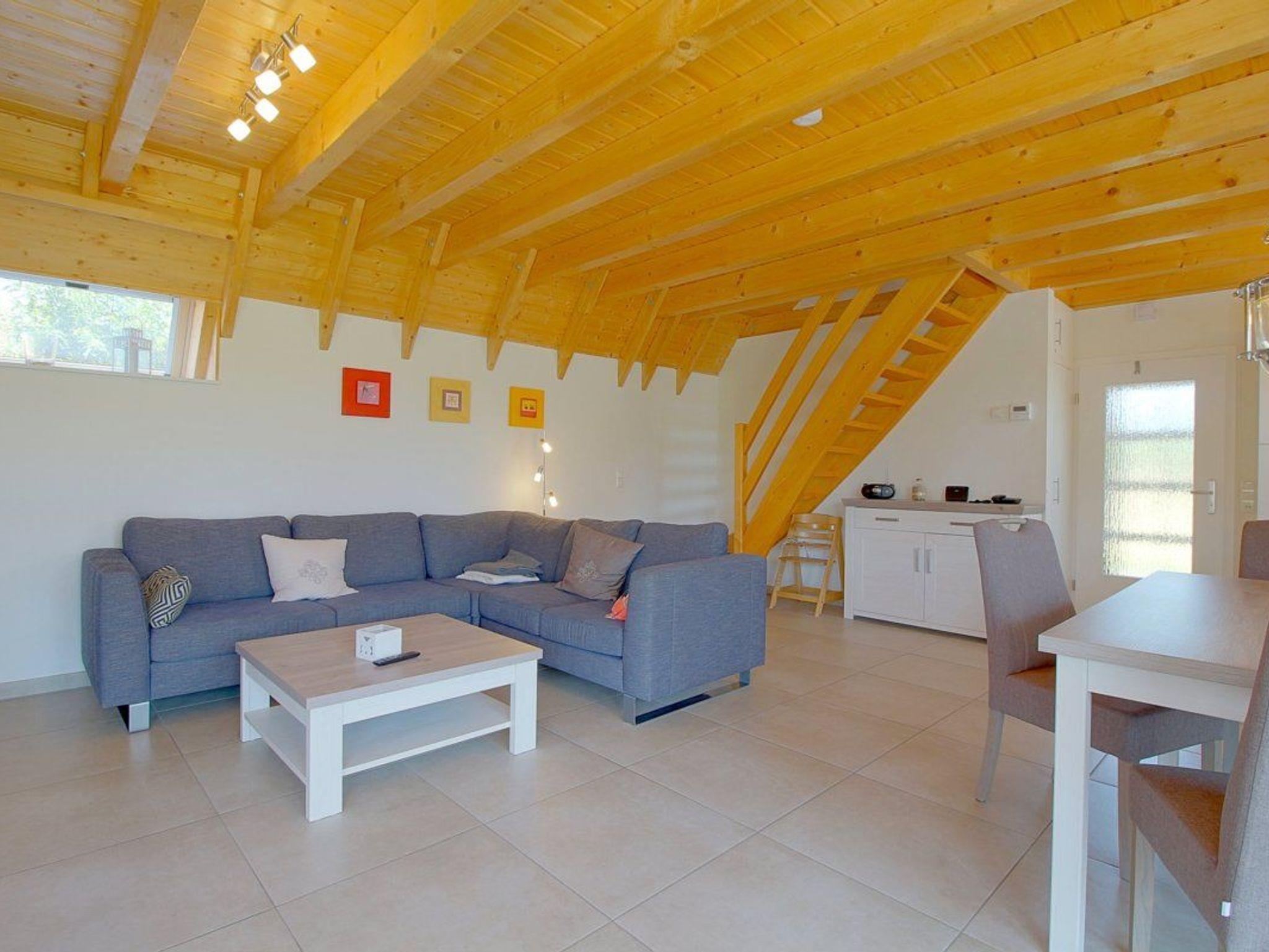 Das gemütliche Wohnzimmer mit Kaminofen schließt an die Küche an. Ein Flachbildschirm-TV Gerät und eine Hi-Fi Anlage stehen für Sie bereit. Die Fußbodenheizung sorgt für angenehme Wärme.