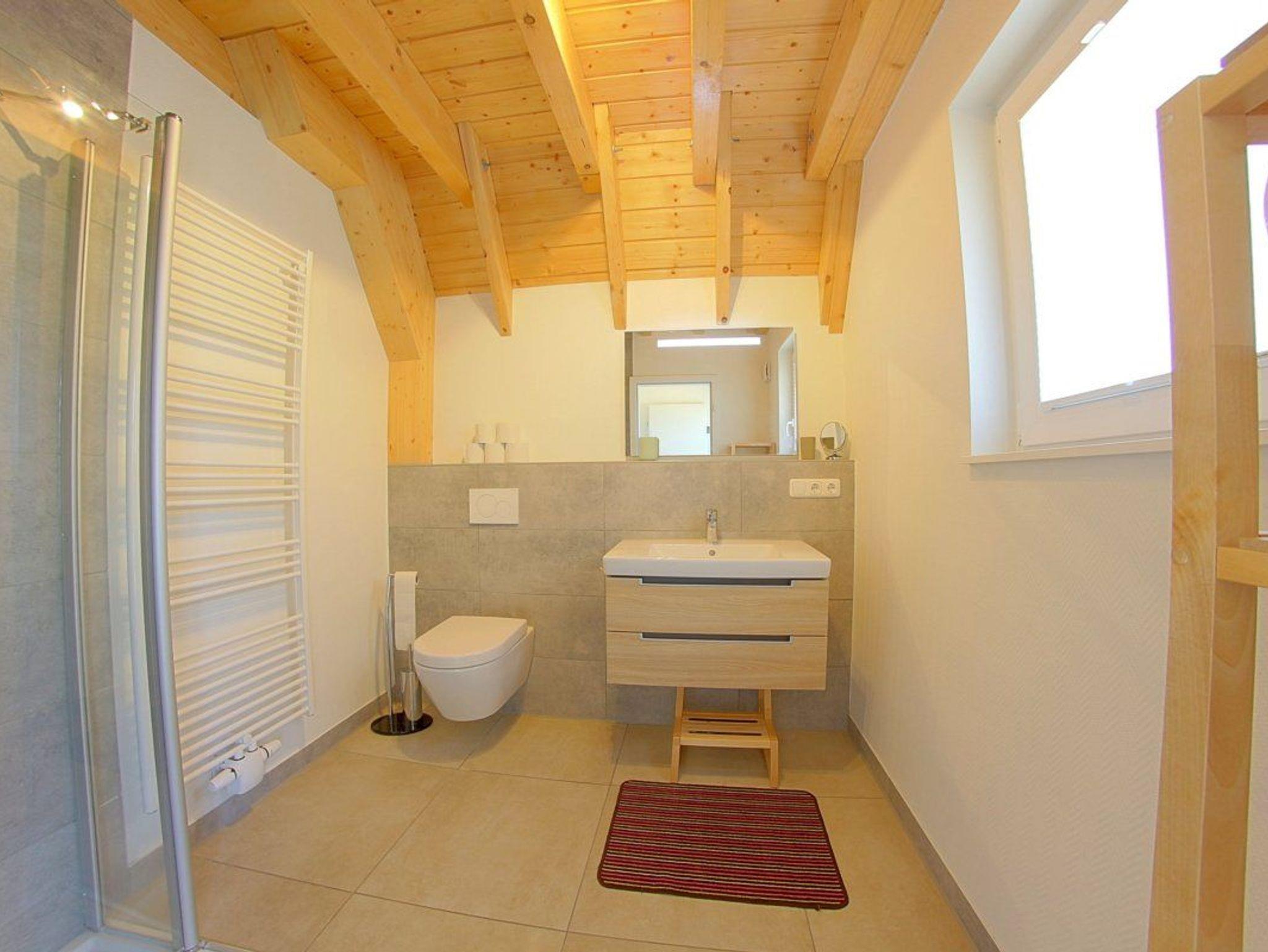 Das Badezimmer mit Dusche befindet sich im Erdgeschoss, ein 2. WC ist im Obergeschoss vorhanden.