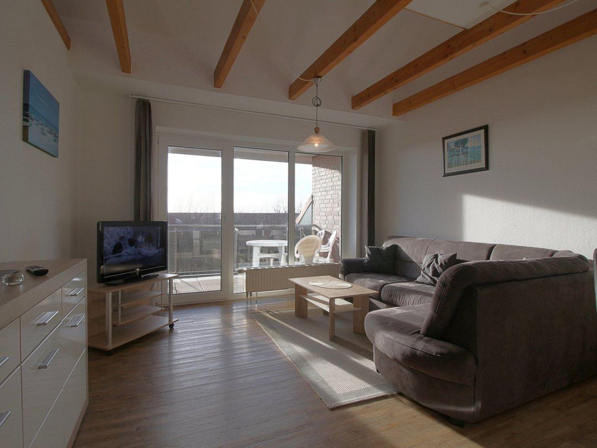 • 2-Zimmer-Ferienwohnung mit Balkon für max. 5 Peronen. Mit 1 Eltern- und 1 Maisionett Schlaf-, Wohn-Essraum und komplett eingerichteter Küche. Duschbad/ WC.