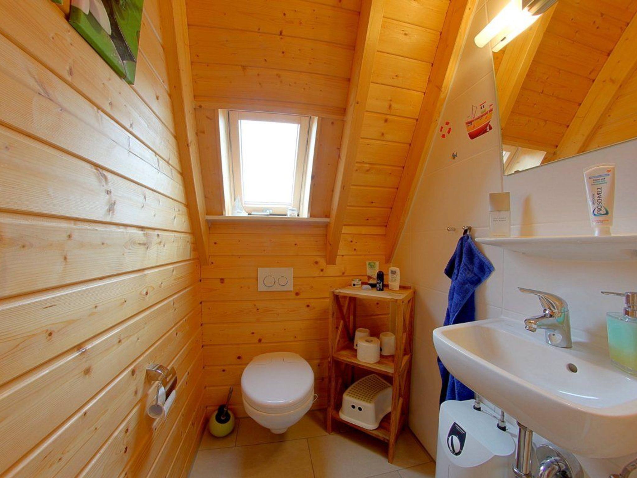 Das Schlafzimmer im Erdgeschoss ist mit einem hochwertigen Doppelbett (180 x 200 cm) aus massiver Buche, höhenverstellbaren 5-Reflex-Zonen-Lattenrosten und Matratzen ausgestattet. Die Komforthöhe von ca. 45cm sorgt nach einem erholsamen Schlaf für ein gesundes und ideales Aufstehen. Zwei Nachtschränke mit Leseleuchten und ein kleiner Flachbildfernseher runden das Gesamtbild ab. Ein Kleiderschrank bietet genügend Platz für Ihre persönlichen Dinge.