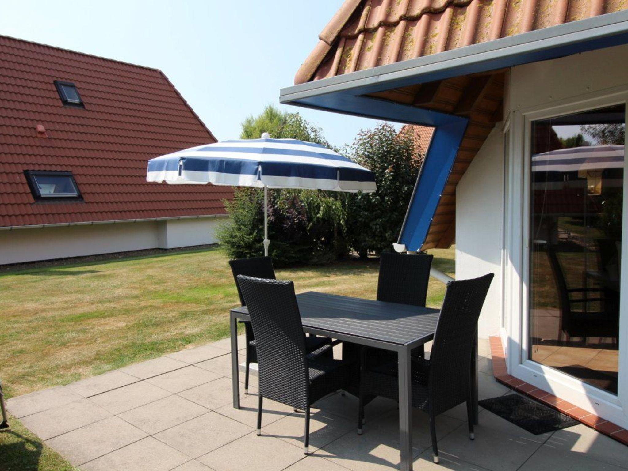Eine Terrasse mit Gartenmöbeln und ein kleines Grundstück gehören natürlich auch zum Haus. Übrigens kann man von der Terrasse direkt auf den Nordseedeich gucken! Im ganzen Haus und in großen Teilen des umliegenden Parks ist kostenlos W-Lan verfügbar!