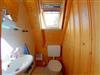 Ein Duschbad mit WC und Waschmaschine im Erdgeschoss und ein weiteres WC im Obergeschoss.
