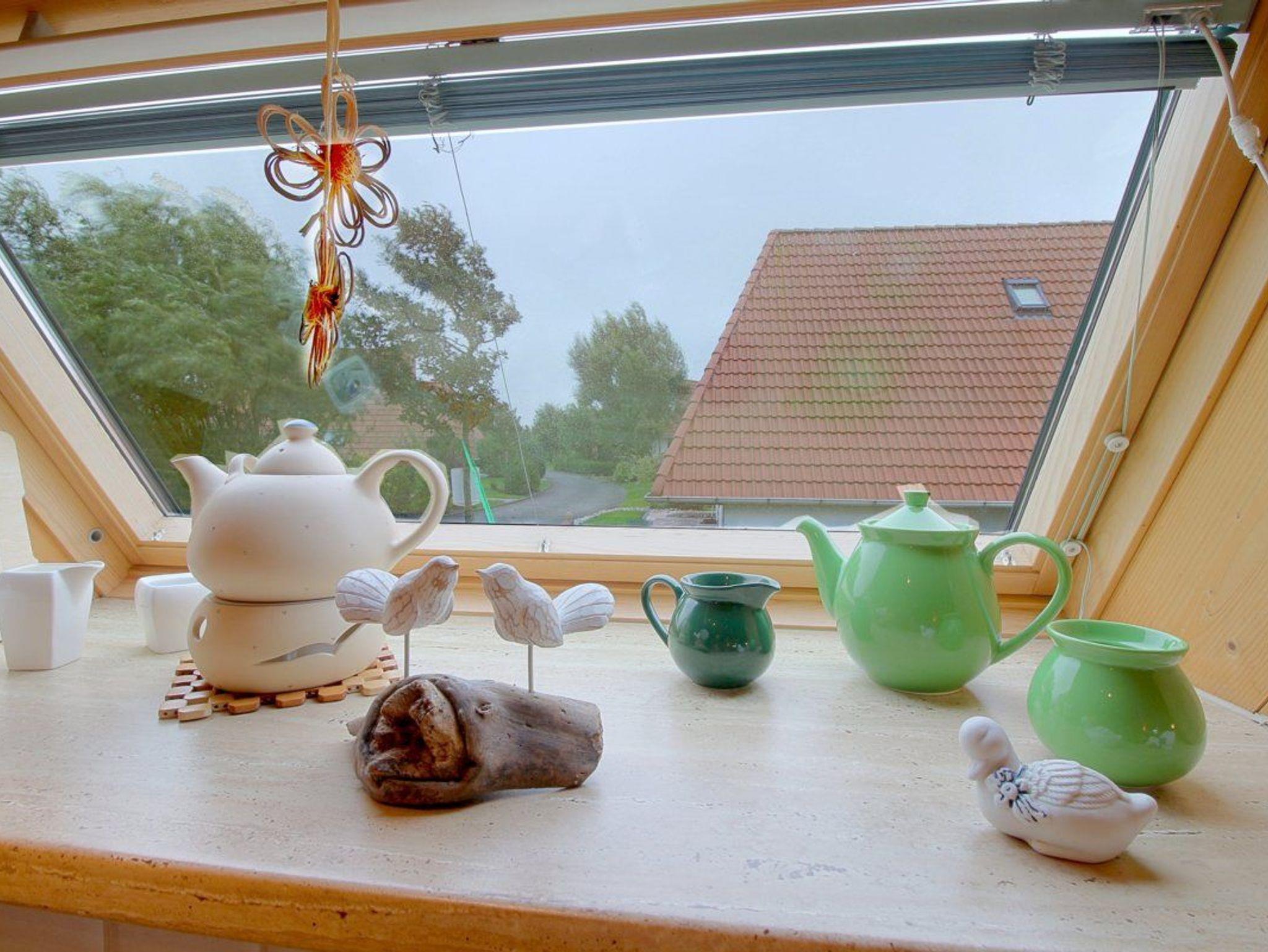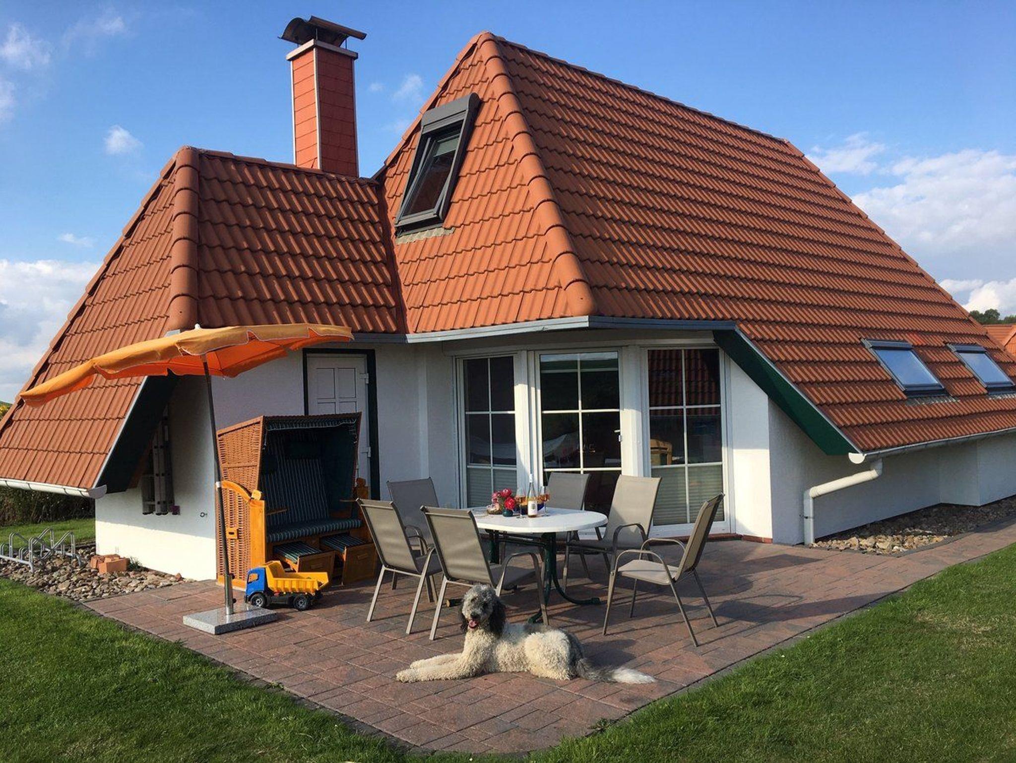 Auf der sonnigen Terrasse mit Gartenmöbeln und eigenem Strandkorb haben Sie einen sensationellen Blick direkt auf den Deich