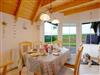 Untergeschoss mit offener Küche und Wohnzimmer, 1 Schlafzimmer für 2 Personen, Bad mit Waschbecken, Dusche und WC. Der Hingucker im Wohnbereich ist der gemütliche Kachelofen, der für wohlige Wärme sorgt.