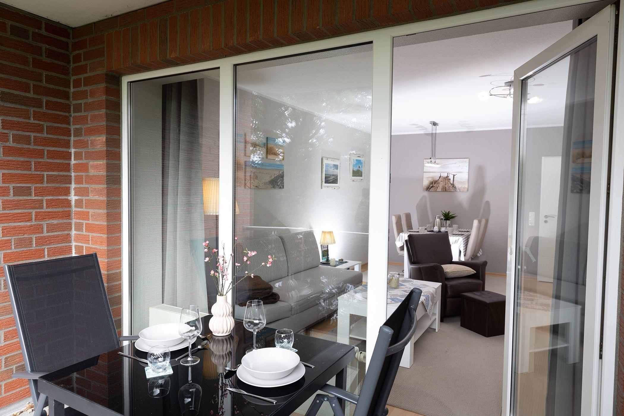 Komplett renovierte im maritimen Stil ausgestattete 2 Raumferienwohnung. Auf dem gemütlichen Balkon haben Sie viel Sonne. Der Wohnbereich bietet ausreichend Platz für bis 2 Personen plus 1 Kleinkind. Essplatz und eine perfekt ausgestattete Küche mit Geschirrspüler, sowie ein geräumiges Schafzimmer mit Doppelbett (180 x 200cm) für einen erholsamen Schlaf und TV werden Ihnen hier angeboten. Helles Duschbad mit Fenster. Der komplette Wohnbereich ist mit Laminatboden ausgestattet.