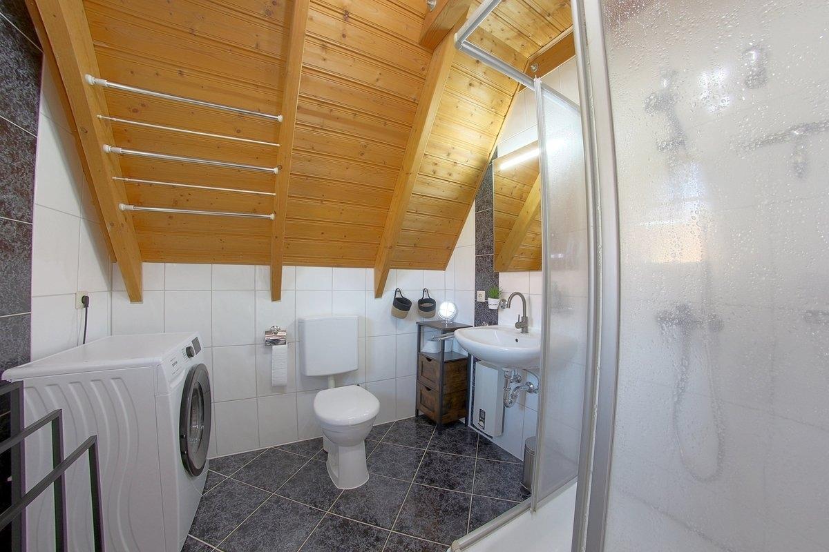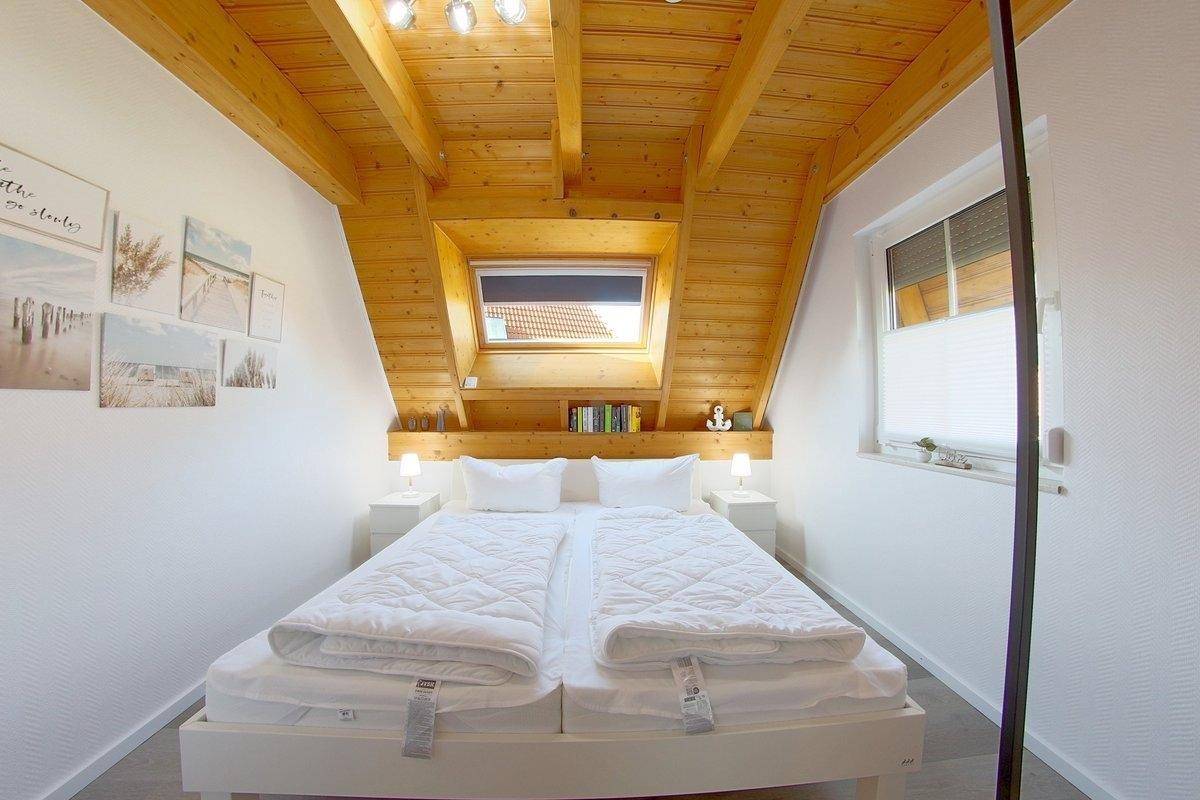 Im Obergeschoß gibt es 2 weitere Schlafzimmer, eins mit Doppelbett und TV und eins mit 2 Einzelbetten. Babyreisebtt und Hochstuhl für die kleinen Gäste sind ebenfalls im Haus. Kostenloses W-LAN ist vorhanden