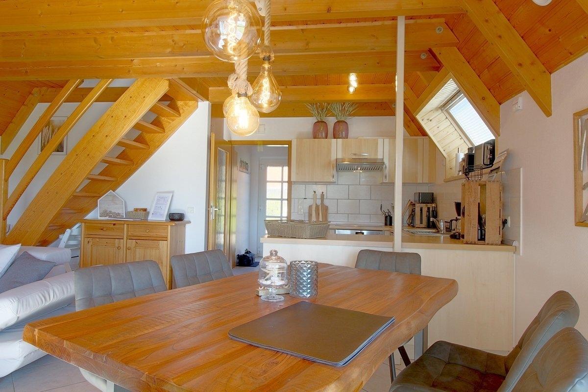 Das Haus verfügt über einen offenen Wohn- Ess- und Küchenbereich mit Ausgang zur Terrasse. 1 Schlafzimmer mit Doppelbett und 1 Duschbad mit Waschmaschine. Die Küche biete alles was der Smutje so braucht. Alles ist Allergikerfreundlich eingerichtet.