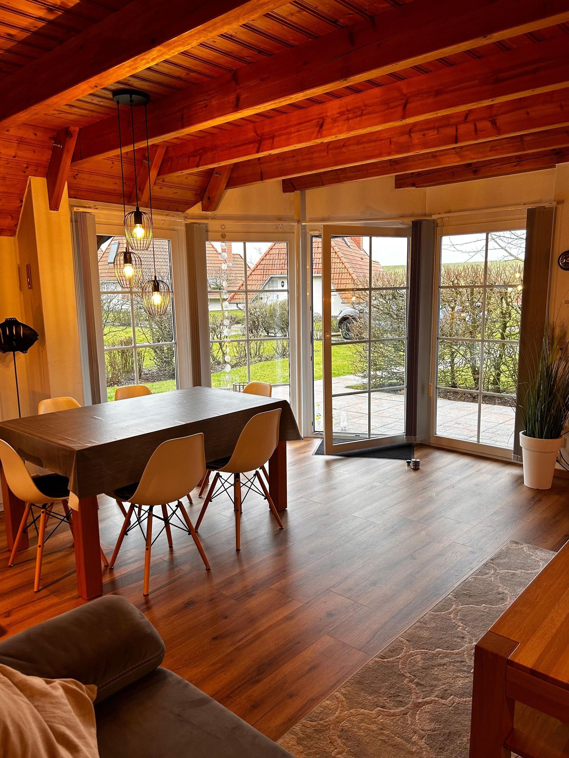 Das gemütliche Wohnzimmer mit Kaminofen und Essplatz schließt an die Küche an. Ein 55 Zoll Ambilight Fernseher und eine Bluetooth Stereoanlage stehen für Sie bereit. Unser Haus verfügt über einen Highspeed- Glasfaseranschluss, den wir Ihnen kostenlos zur Verfügung stellen.