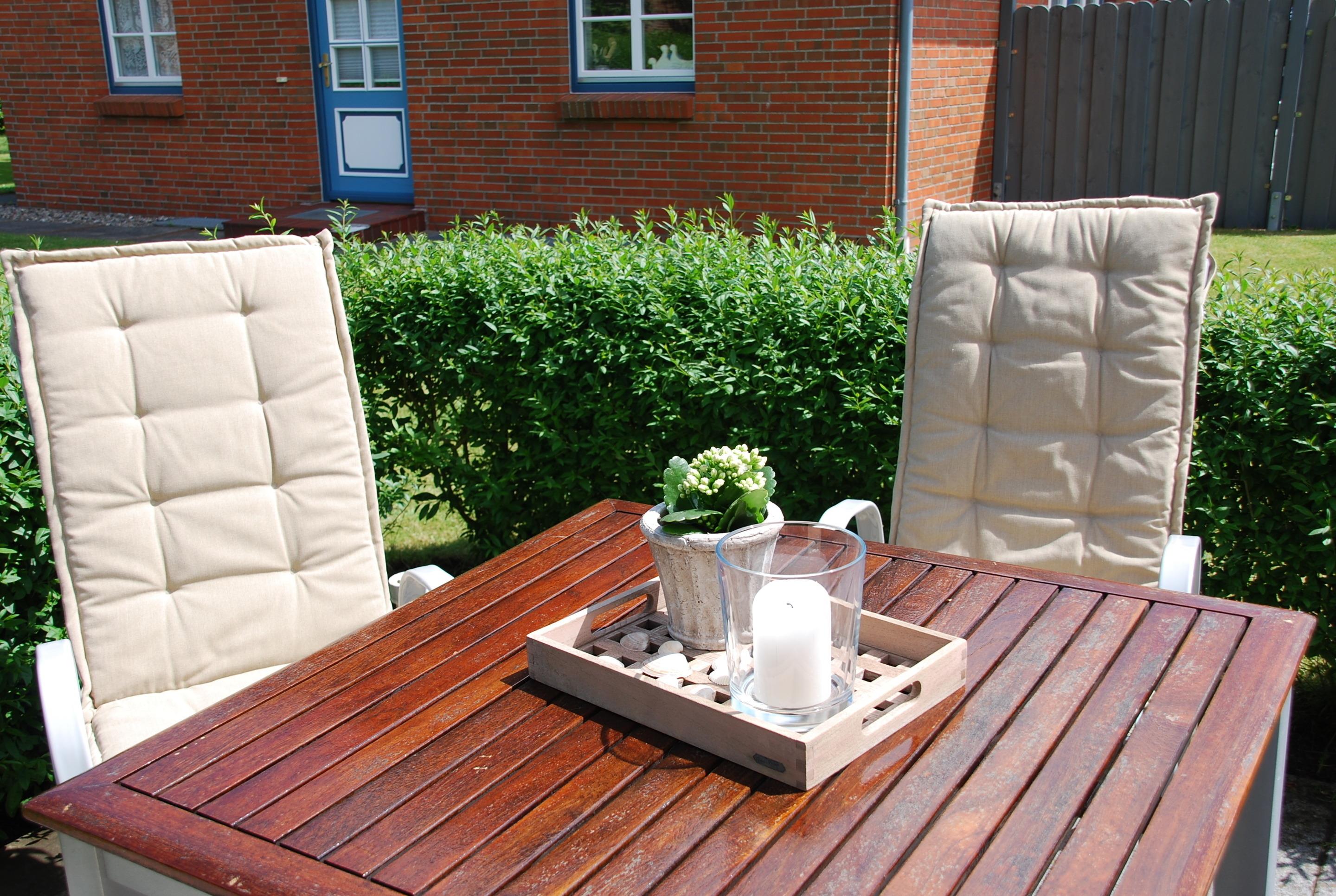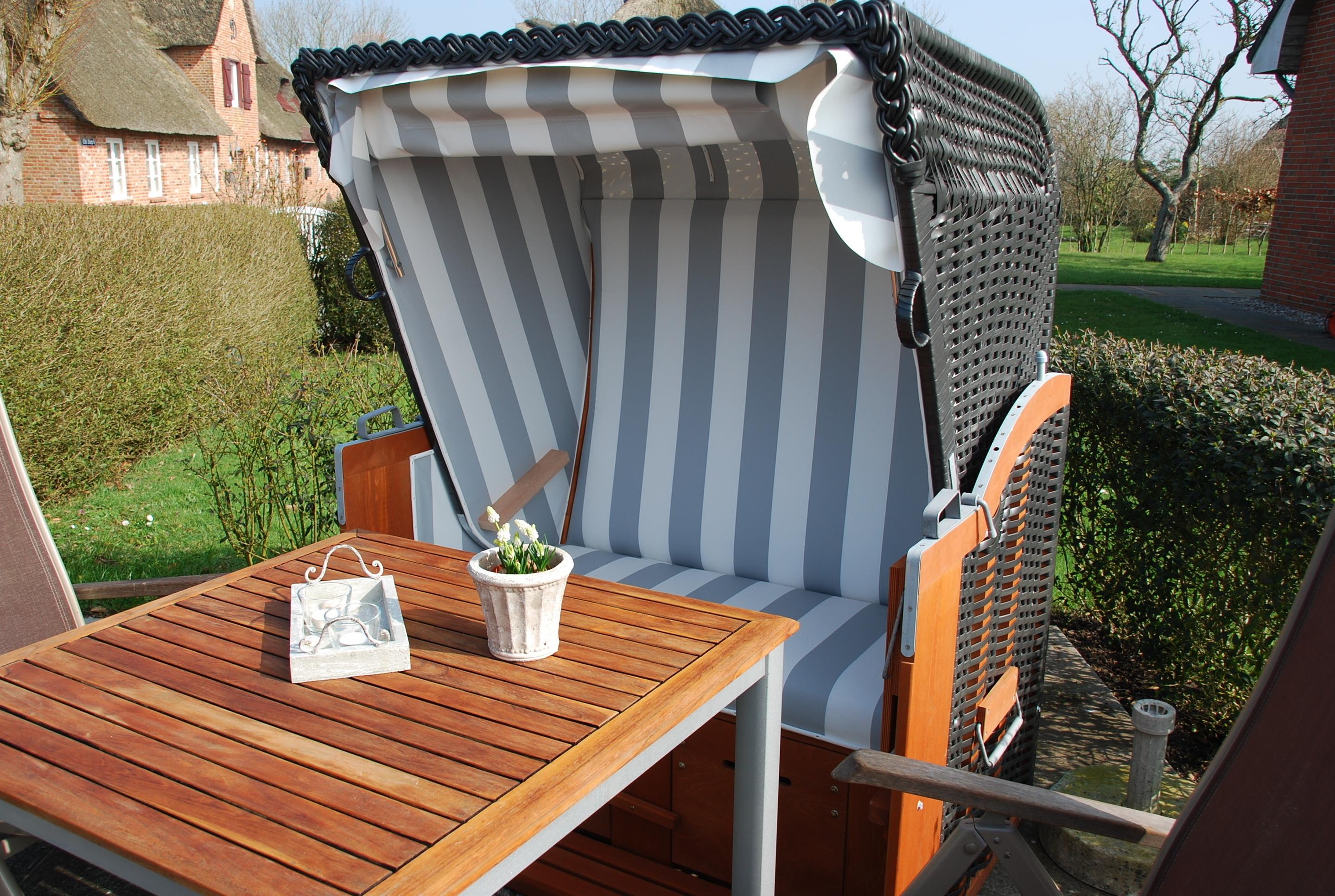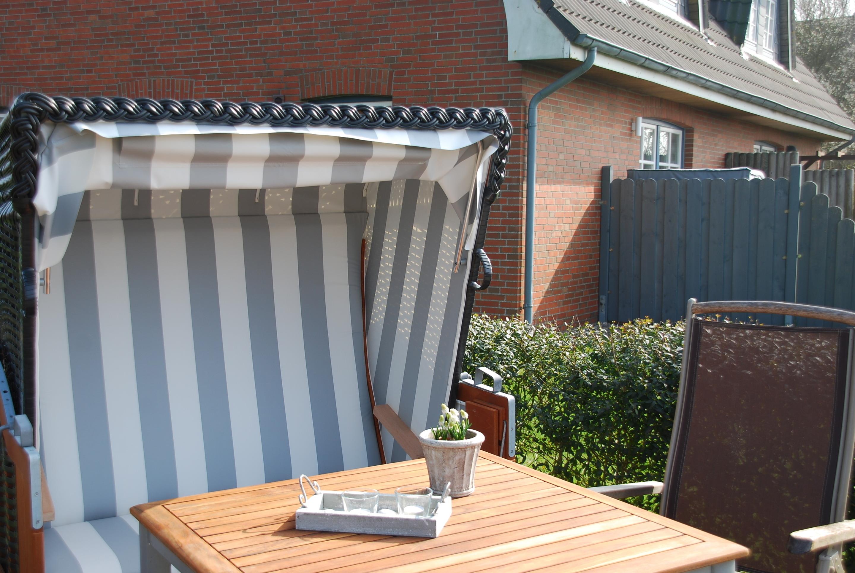 Zur Wohnung gehört ein kostenfreier PKW-Stellplatz am Haus, eine eigene Terrasse mit Strandkorb und Gartenmöbeln (April-September).