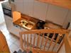 Hunde sind erlaubt. Der Fußboden im Erdgeschoss ist mit Fliesen, der des Obergeschosses mit Korklaminat ausgelegt.