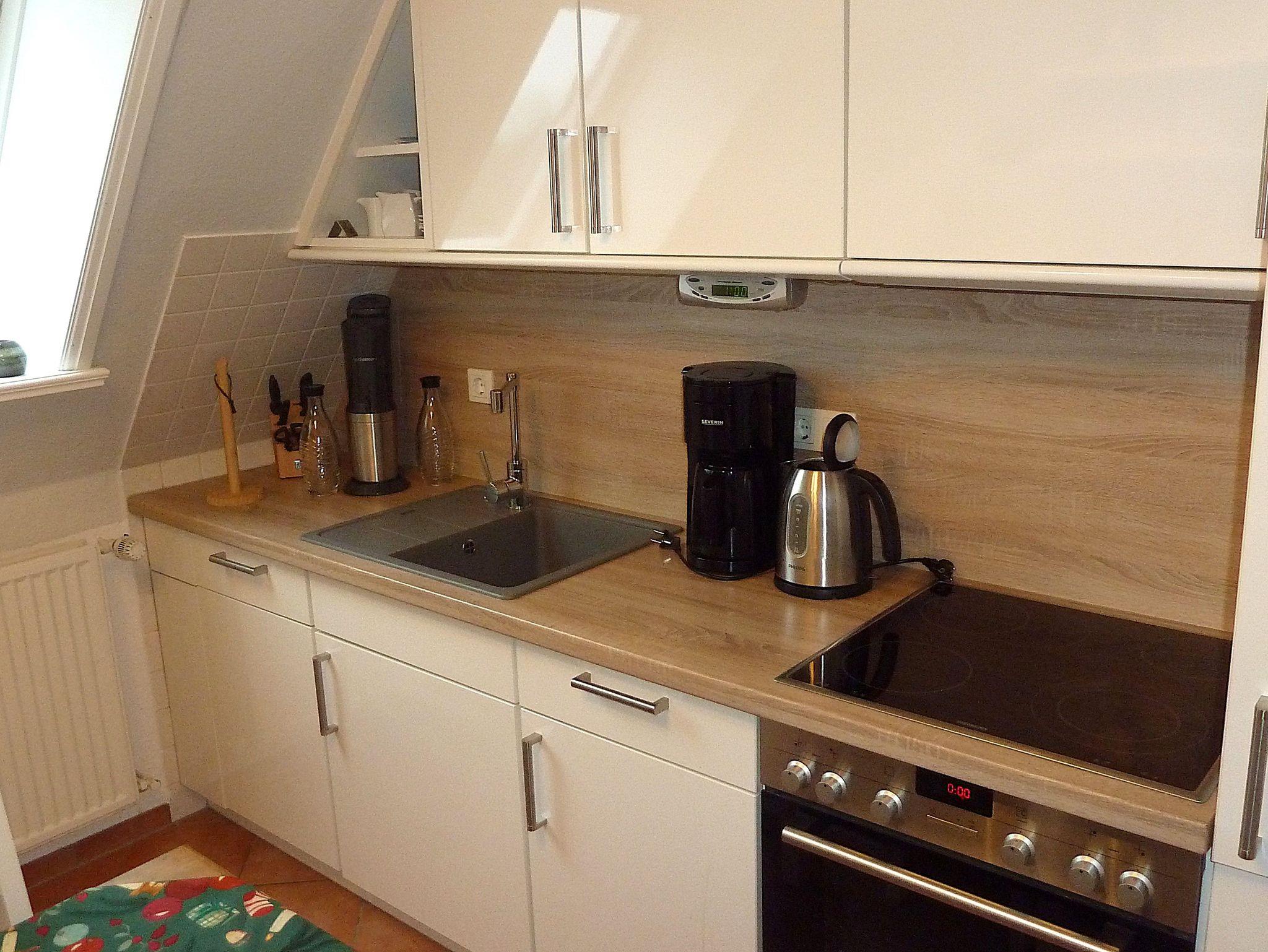 Küche / Haushalt: Backofen mit Ceranfeld, Filterkaffeemaschine, Geschirrspüler, Wasserkocher, Toaster, Mikrowelle.