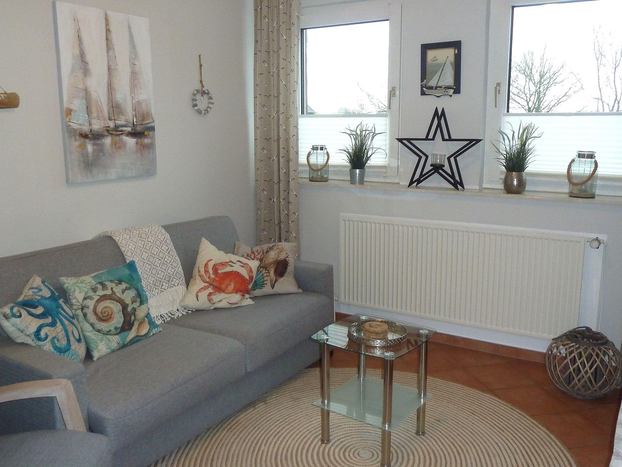 Die gemütliche und maritim, geschmackvoll eingerichtete 50 m² große Obergeschoßwohnung befindet sich in einem Mehrfamilienhaus in Wrixum und bietet Platz für zwei bis vier Personen. Das Objekt verfügt über zwei separate Schlafzimmer - das eine Schlafzimmer ist mit einem Doppelbett ausgestattet und das zweite Schlafzimmer hat eine sehr stabile Doppelchlafcouch. Dazu erwartet Sie ein kleines helles Wohnzimmer, eine sperate Küche und das Duschbad darf natürlich nicht fehlen.
