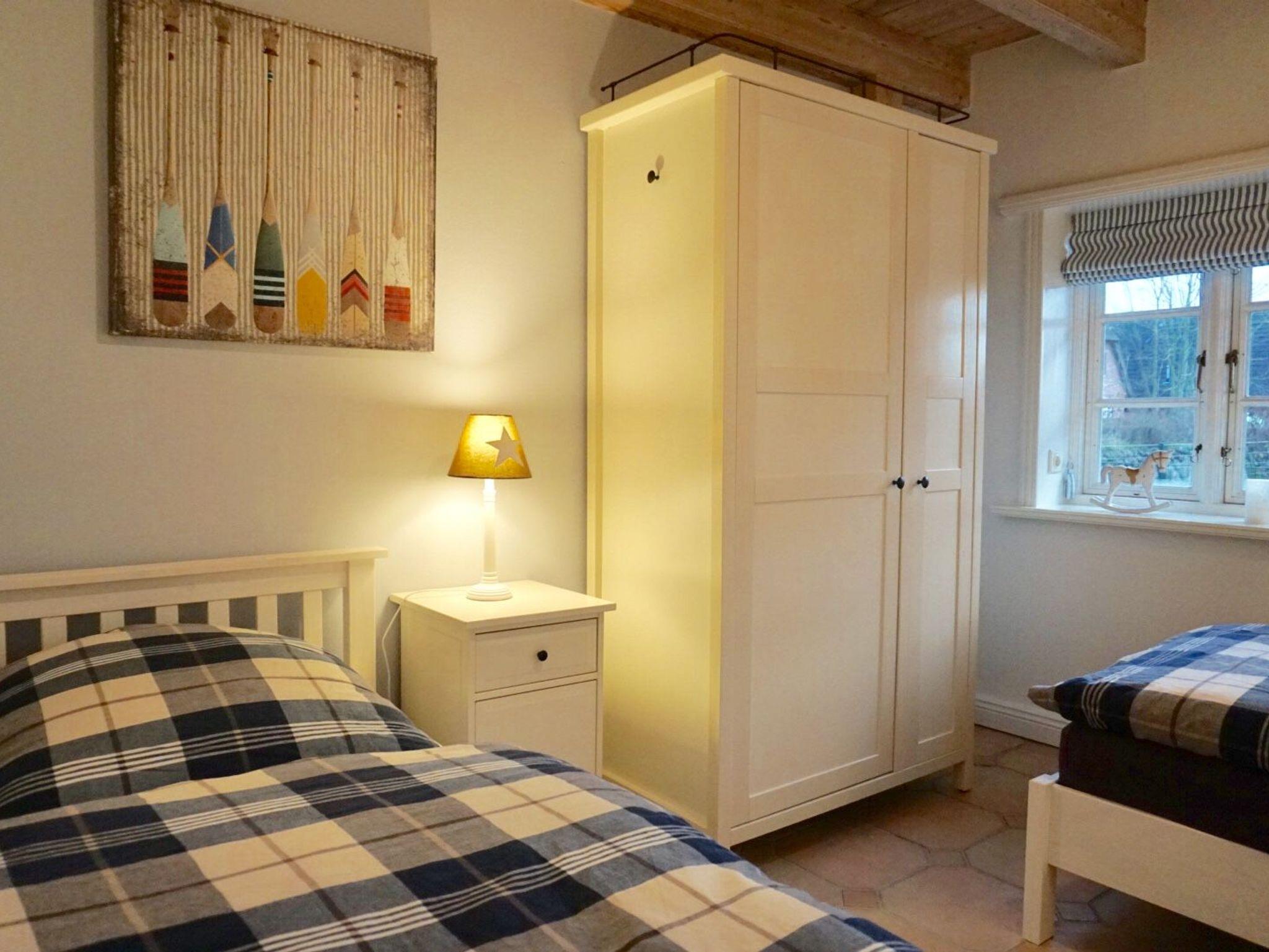 Die Ferienwohnung Hygge befindet sich in einem historischen Friesenhof in Wrixum und wurde zuletzt 2023 renoviert. Sie bietet Platz für 4 Personen und ein Baby und ist im maritimen Stil komfortabel eingerichtet. Die Wohnung befindet sich im Erdgeschoss und verfügt über einen großzügigen Wohn- und Essbereich mit einer modern ausgestatteten Küche. Zwei Schlafzimmer mit einem Doppelboxspringbett und zwei Einzelbetten befinden sich angrenzend an das Wohnzimmer. Das Badezimmer ist geräumig und verfügt über eine Dusche und eine Badewanne. Von der Terrasse aus, die mit Strandkorb und Gartenmöbeln ausgestattet ist, gelangt man direkt in den Wohnbereich. Für ein Babybett ist ausreichend Platz vorhanden, jedoch sind Haustiere nicht erlaubt. In der Garage kann ein PKW mit einer Breite bis 235 cm und einer Länge bis 490 cm geparkt werden. Fahrzeuge mit Dachbox oder Transporter passen aufgrund ihrer Höhe leider nicht in die Garage. Von der Unterkunft aus können ruhige Radtouren zu den umliegenden Inseldörfern oder durch die weite Landschaft unternommen werden. In weniger als 10 Minuten mit dem Fahrrad erreicht man den Ort Wyk mit seinen Sehenswürdigkeiten wie dem Hafen, der Promenade mit Geschäften und Gastronomie, dem Wellenbad, der Schutzstation Wattenmeer und dem langen Sandstrand mit Blick auf die Halligen. In Wrixum gibt es einen Bäcker, zwei Restaurants und einen Fahrradverleih in fußläufiger Entfernung von der Wohnung.