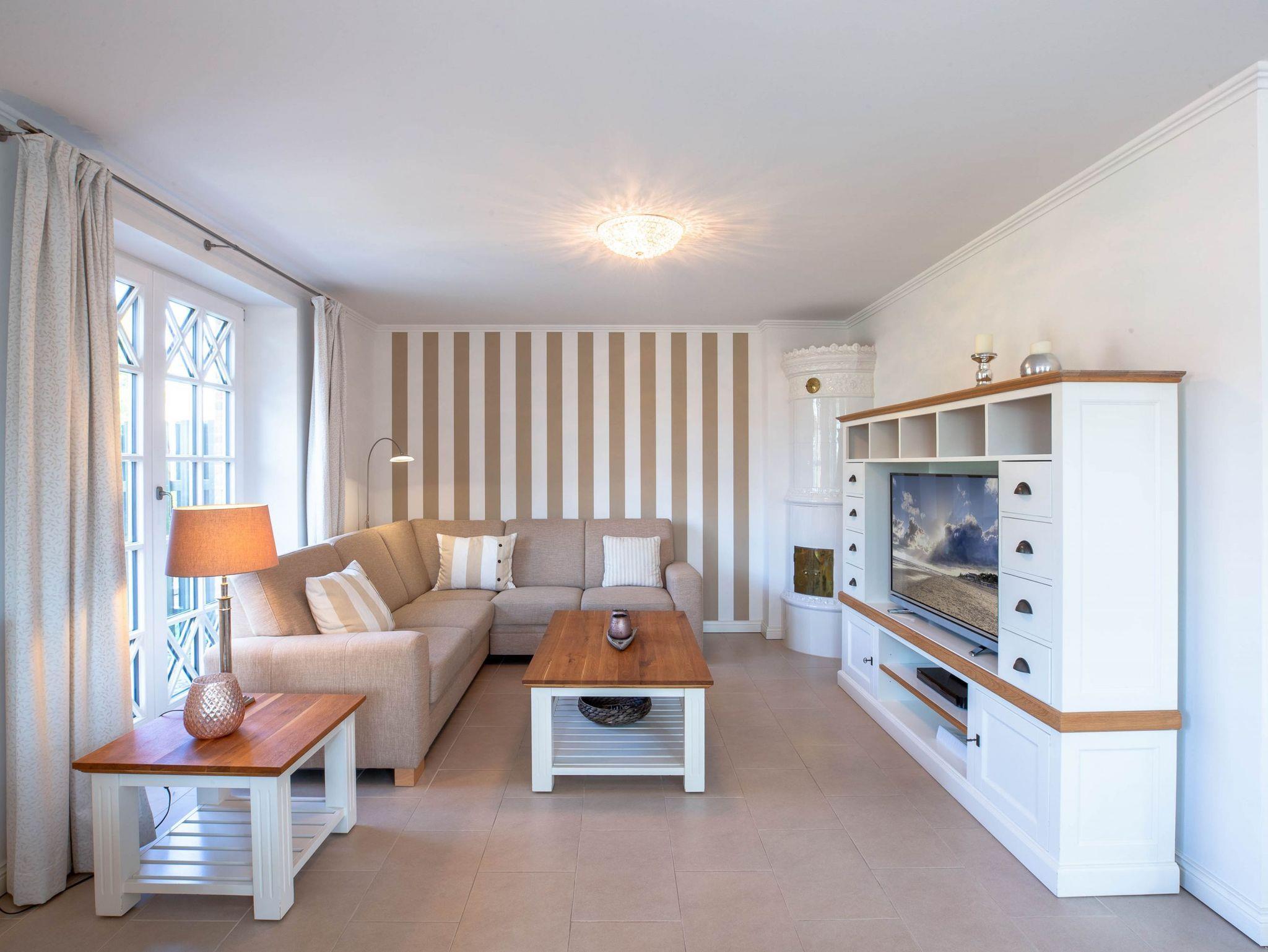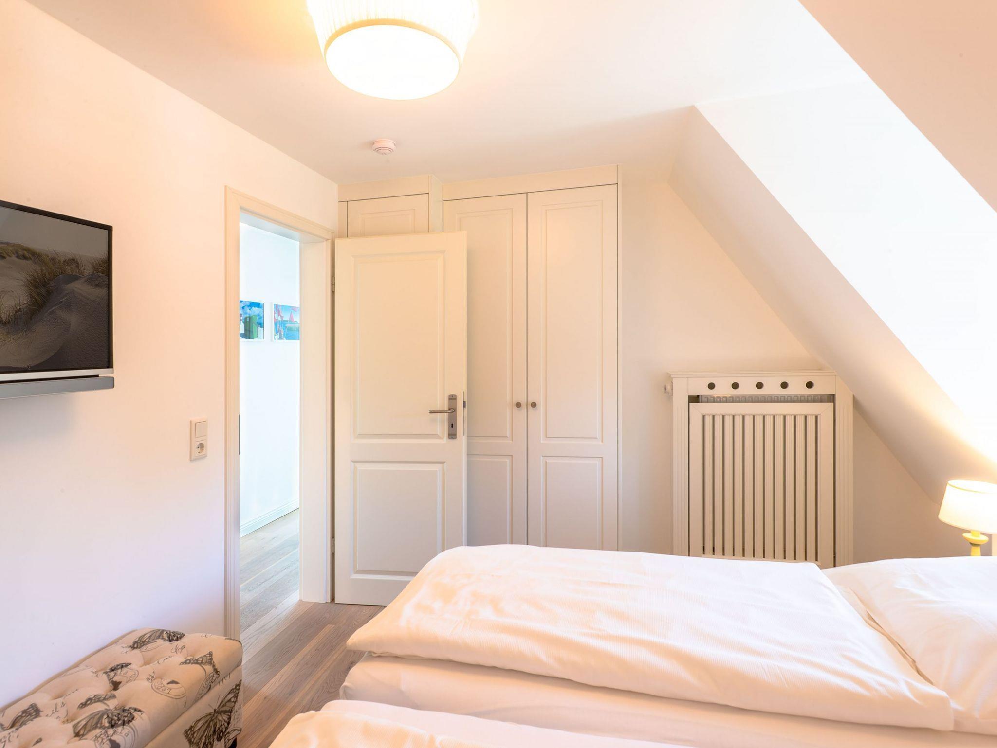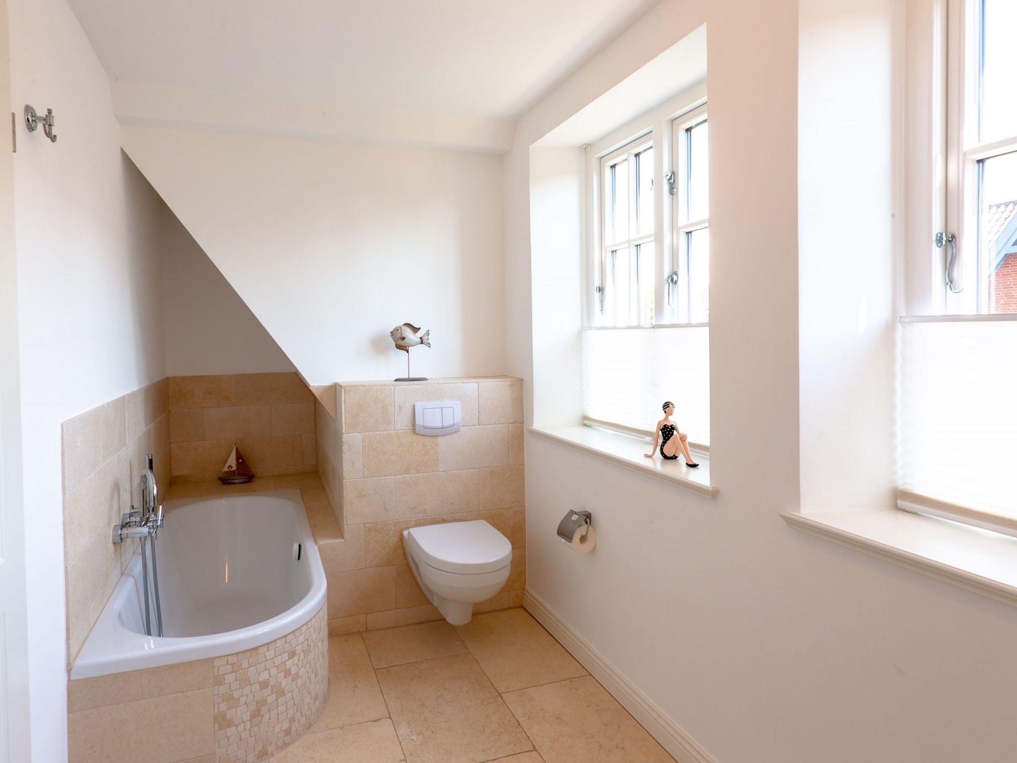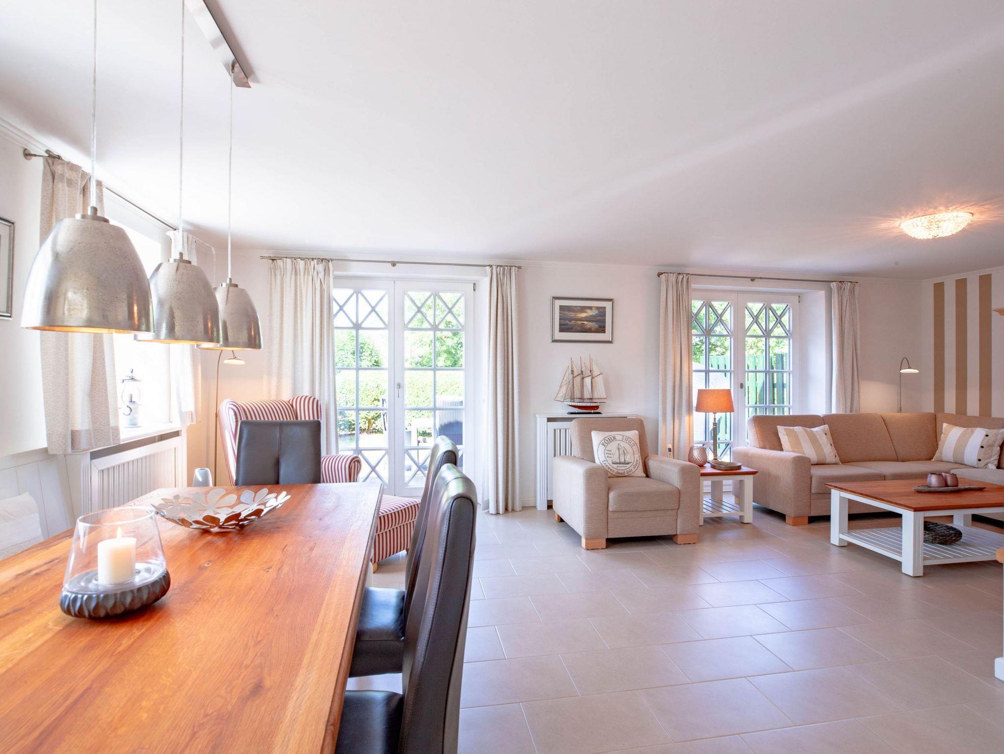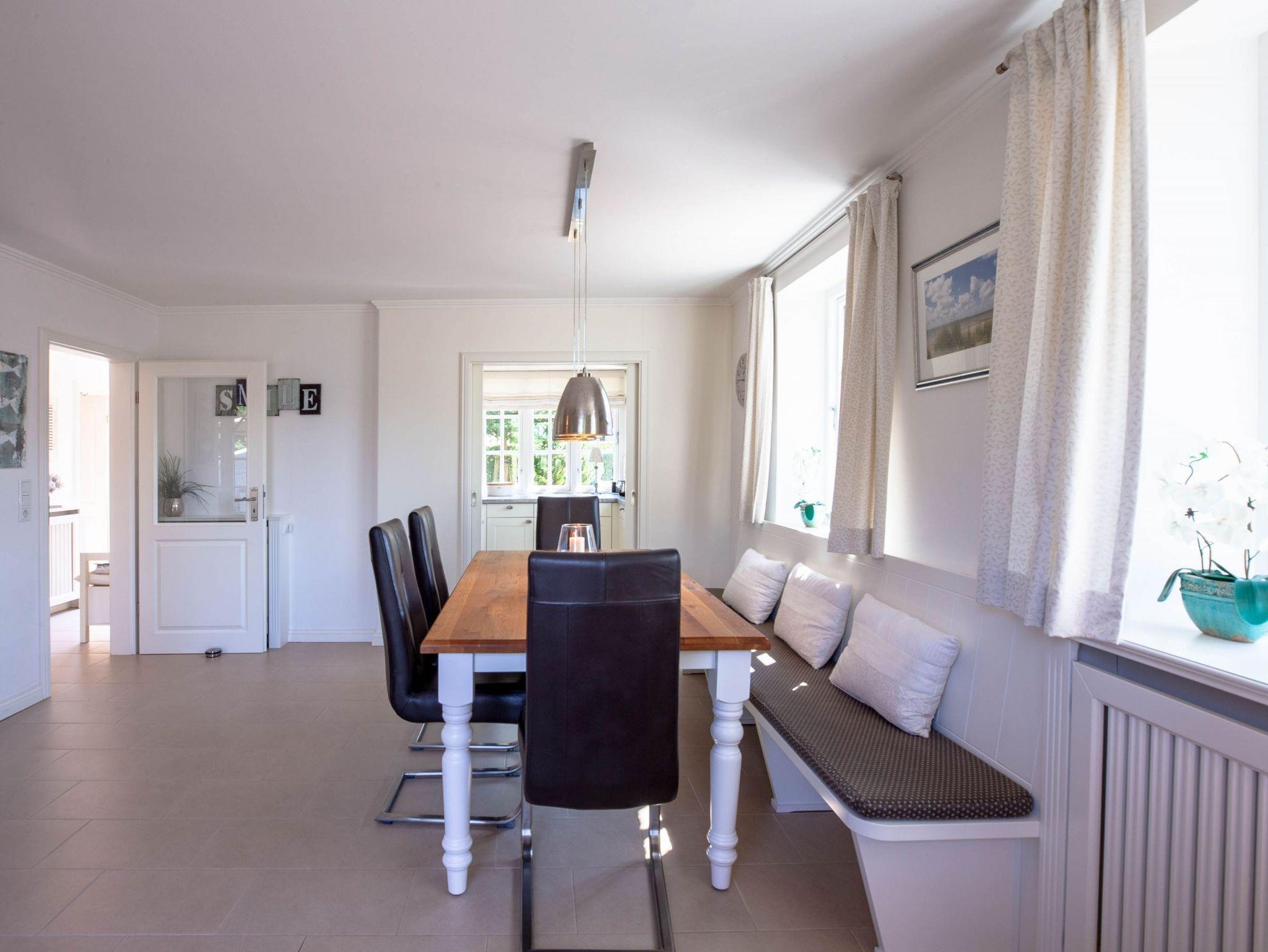 Ein typisches Friesenhaus mit sehr schöner Architektur. Die Summe schöner Details wie Holzsprossenfenster, Reetdach, Fliesen und Holzarbeiten - schafft eine wunderbare Atmosphäre. Das Doppelhaus unter Reet liegt an der Marsch, eingebettet in Wrixum - dem kleinen Nachbarort von Wyk mit dörflichem Charme. In der Nachbarschaft befindet sich ein Café mit leckerem, selbstgebackenem Kuchen, ein Fahrradverleih um die Insel per Rad zu erkunden und die Backstube des ortsansässigen Bäckers. Die Stadt Wyk mit seinen Geschäften und der Promenade sowie vom Strand nur etwa 5 - 10 Fahrradminuten entfernt.