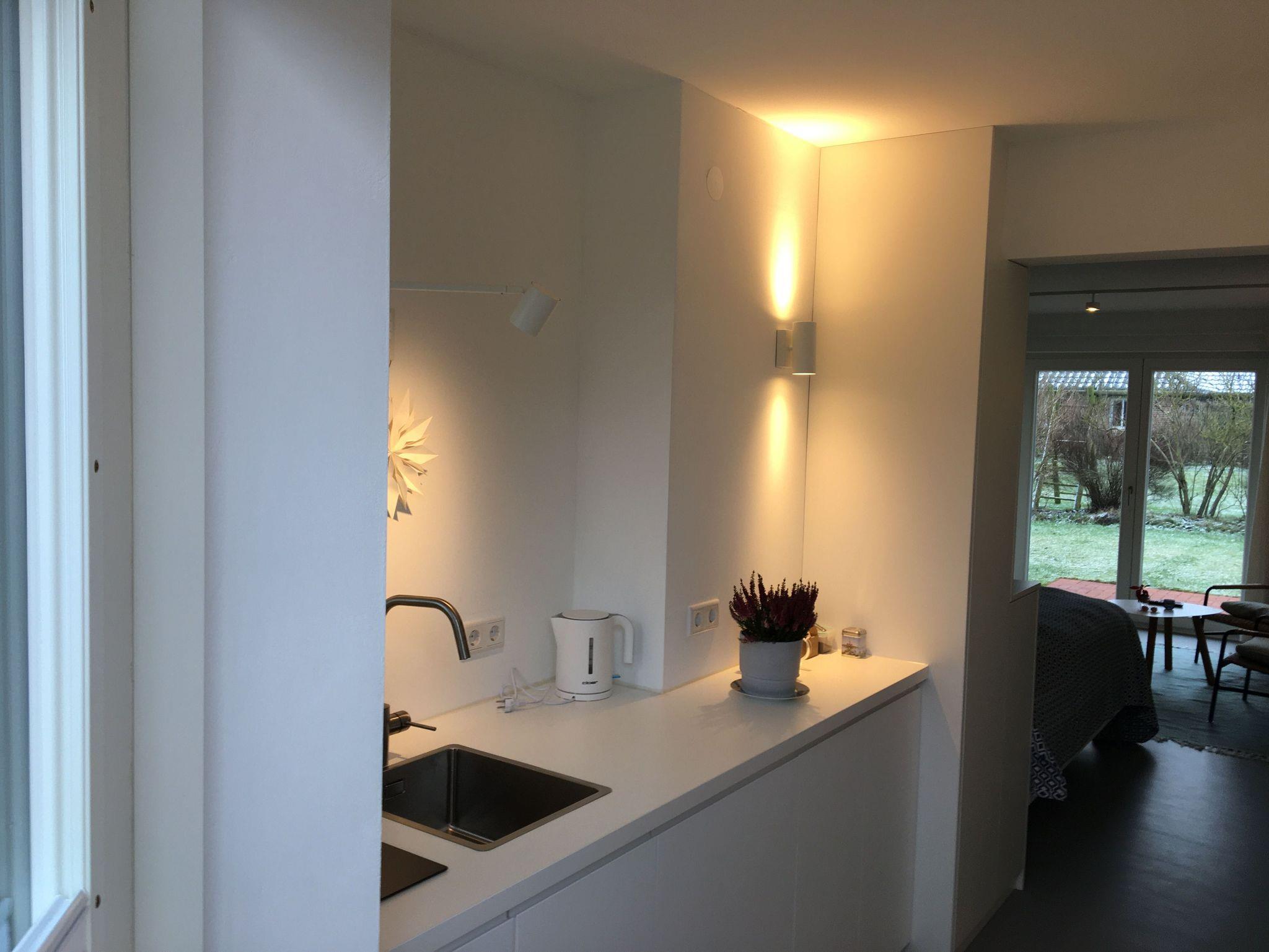 Auf unserem circa 900 qm großen Grundstück im kleinen Dorf Wrixum entstand in 2023 ein modernes Gästehaus mit 3 Appartements, die jeweils über einen eigenen Eingang und eine Terrasse verfügen. Bei der Gestaltung der Appartements haben wir ein minimalistisches Innendesign verfolgt.