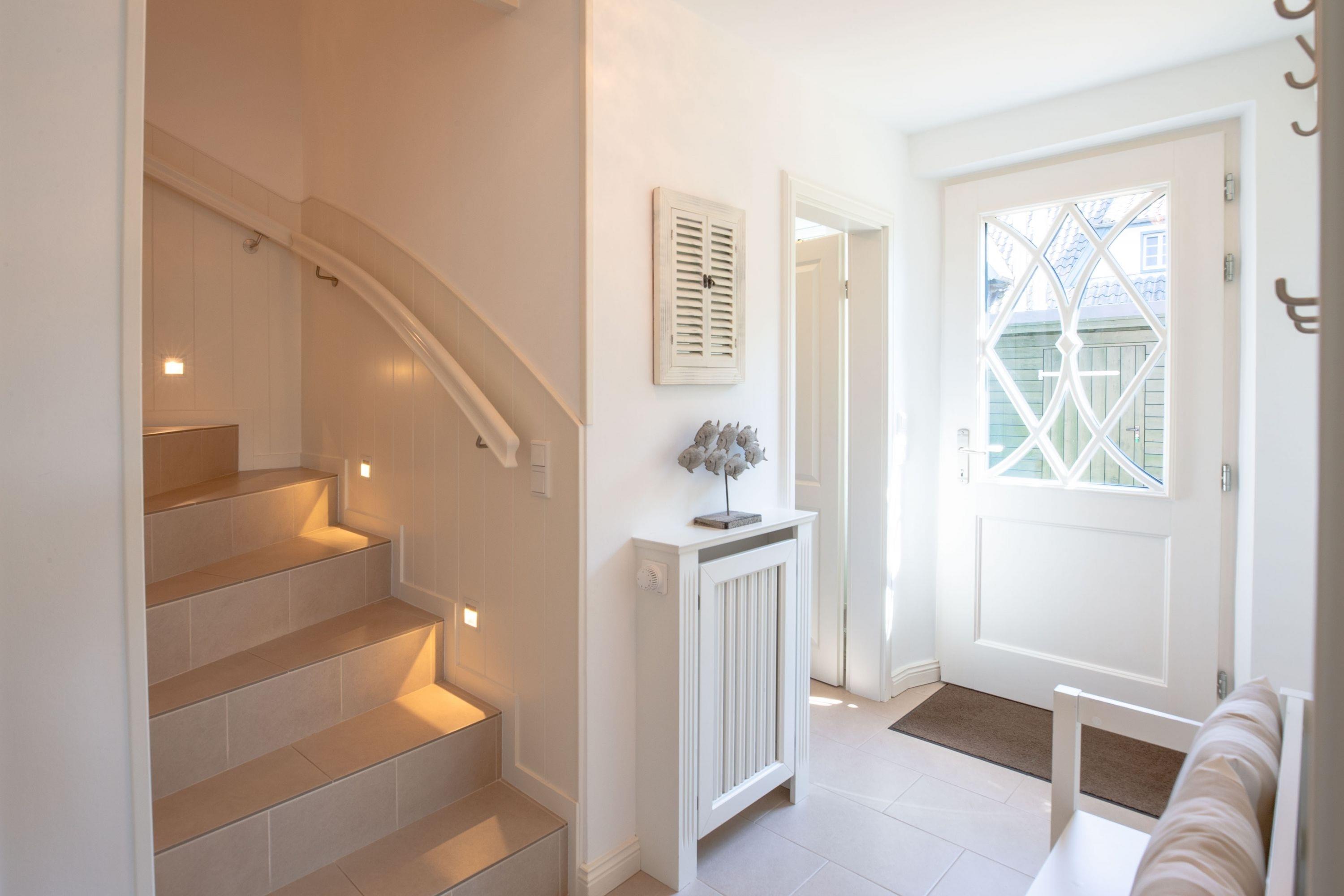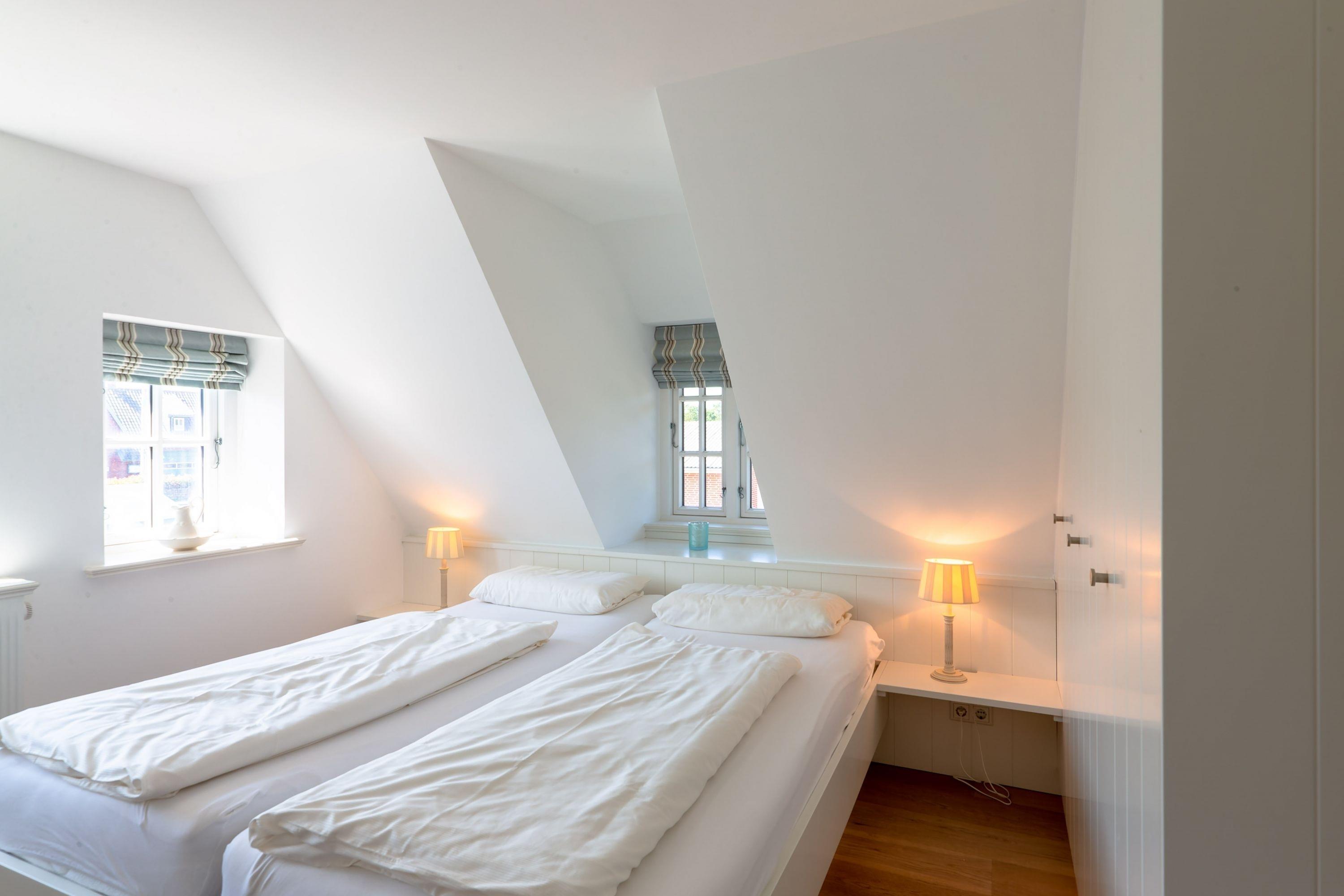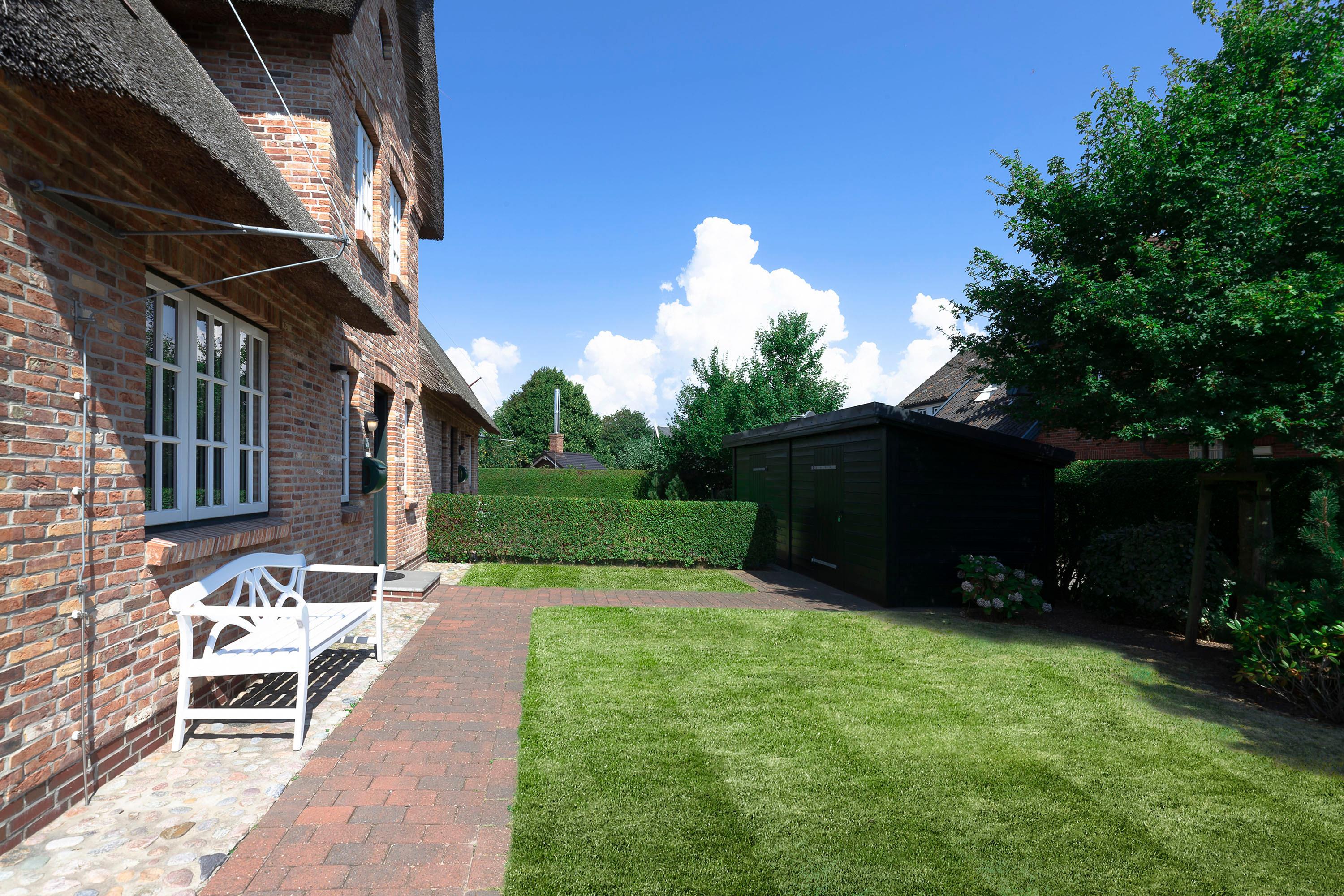 Ein typisches Friesenhaus mit sehr schöner Architektur. Die Summe schöner Details wie Holzsprossenfenster, Reetdach, Fliesen und Holzarbeiten - schafft eine wunderbare Atmosphäre. Das Doppelhaus unter Reet liegt an der Marsch, eingebettet in Wrixum - dem kleinen Nachbarort von Wyk mit dörflichem Charme. In der Nachbarschaft befindet sich ein Café mit leckerem, selbstgebackenem Kuchen, ein Fahrradverleih um die Insel per Rad zu erkunden und die Backstube des ortsansässigen Bäckers. Die Stadt Wyk mit seinen Geschäften und der Promenade sowie vom Strand nur etwa 5 - 10 Fahrradminuten entfernt.