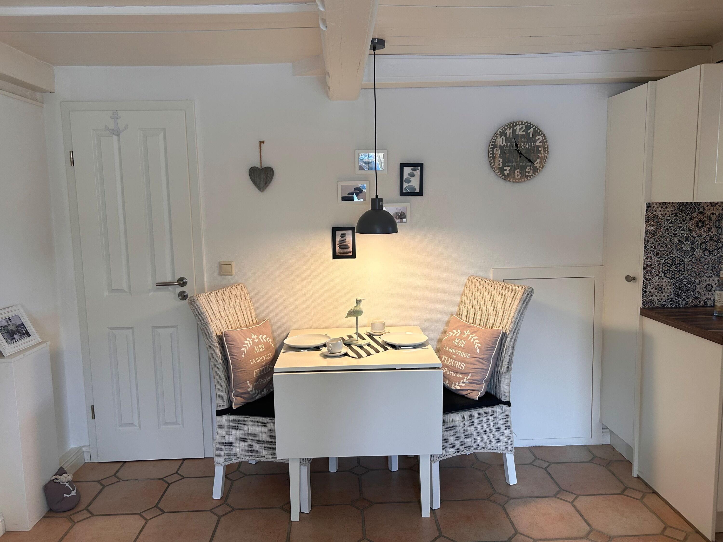 Die Erdgeschosswohnung bietet auf kompaktem Raum alles, was man für entspannte Urlaubstage braucht: einen geschmackvoll eingerichteten Wohn- und Essbereich mit moderner Küchenzeile, ein angrenzendes Schlafzimmer mit Doppelbett und ein kleines Duschbad. Ein Babybett findet ebenfalls problemlos Platz, falls die Kleinsten mitreisen. Haustiere sind in dieser Wohnung nicht erlaubt.