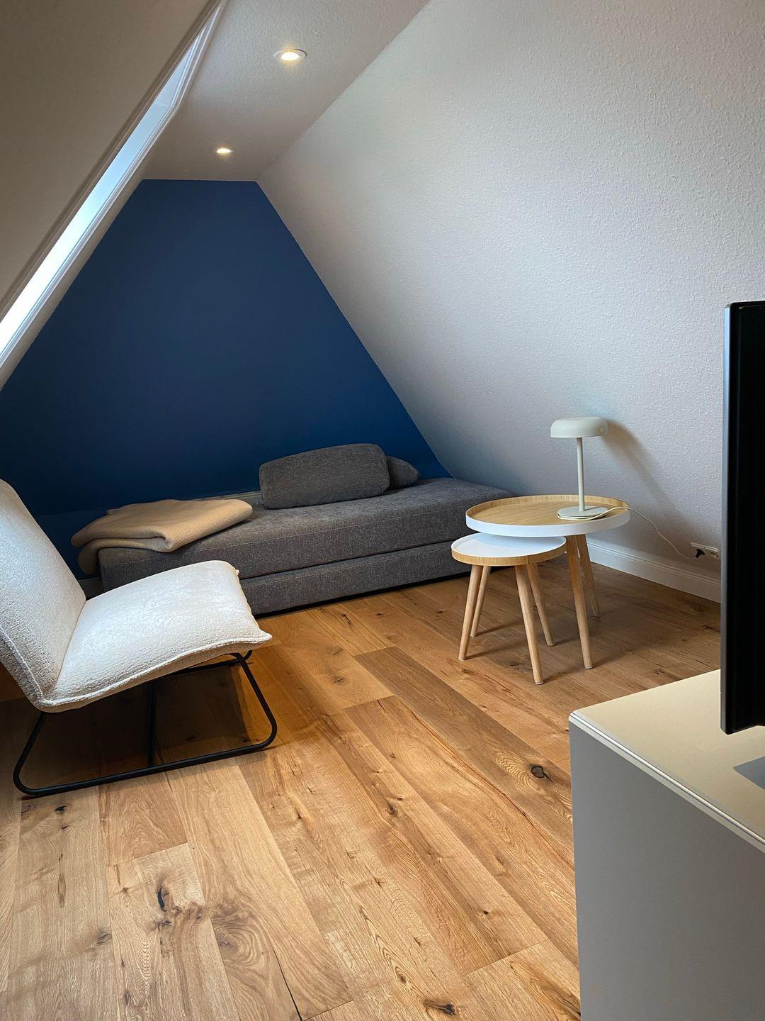 Im gemütlichen Wohnbereich finden Sie ein bequemes Sofa, zwei Sessel, einen SAT-TV und einen CD-/DVD-Player vor, damit Sie sich wie zu Hause fühlen können.