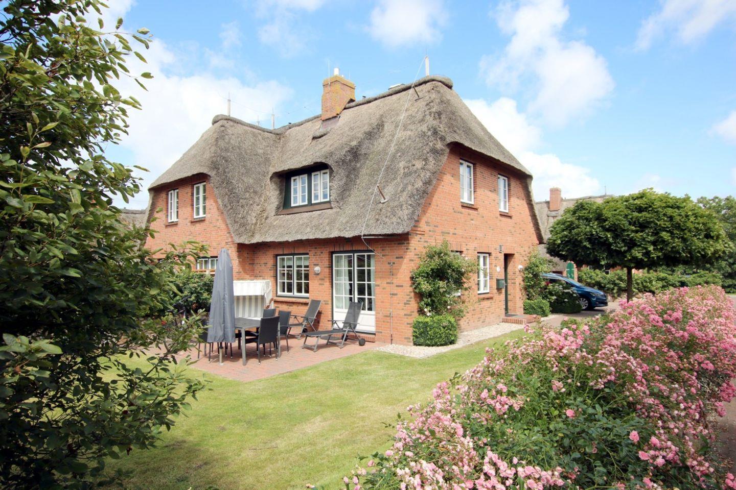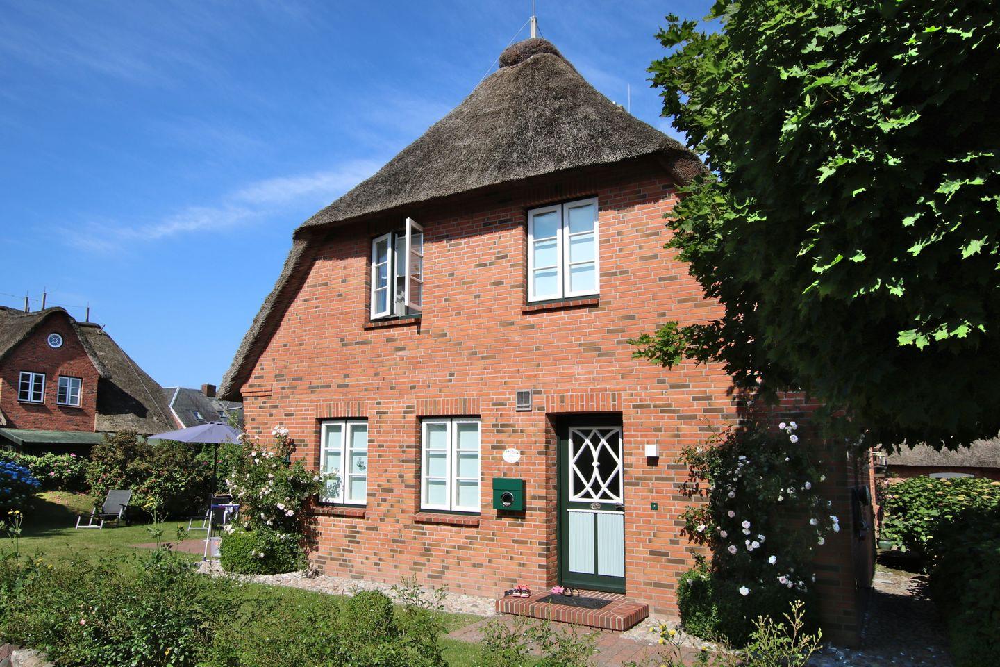 Schönes Reetdachdomizil in ländlicher Idylle in Wrixum auf Föhr, Ohl Dörp 49, Nr. 3; vom DTV mit 4 Sternen ausgezeichnet. Gemütliche 4-Zimmer Doppelhaushälfte 90qm auf einem ca. 400 qm großen Grundstück mit Friesenwall und 2 PKW-Stellplätzen in inseltypischem Baustil mit viel liebe zum Detail eingerichtet. Komplettrenovierung 2022/2023