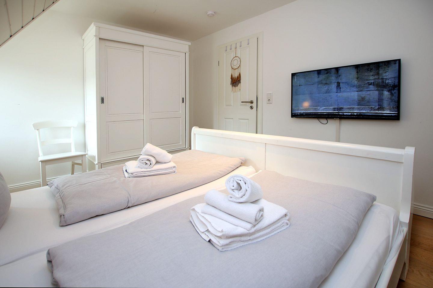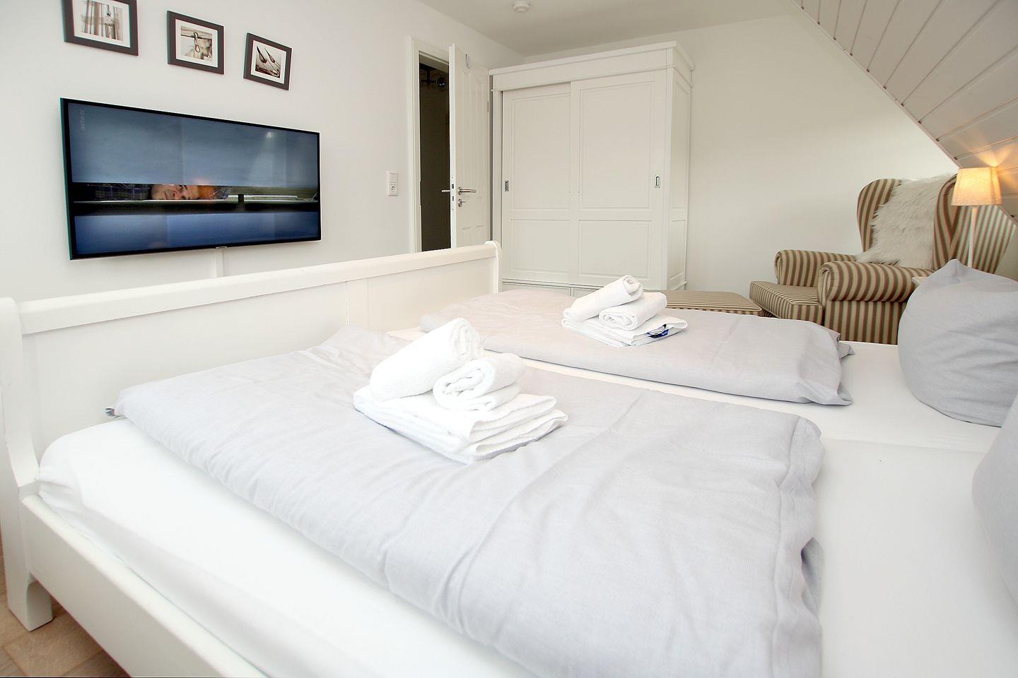 - Schlafzimmer 1 mit Doppelbett und Kleiderschrank, TV