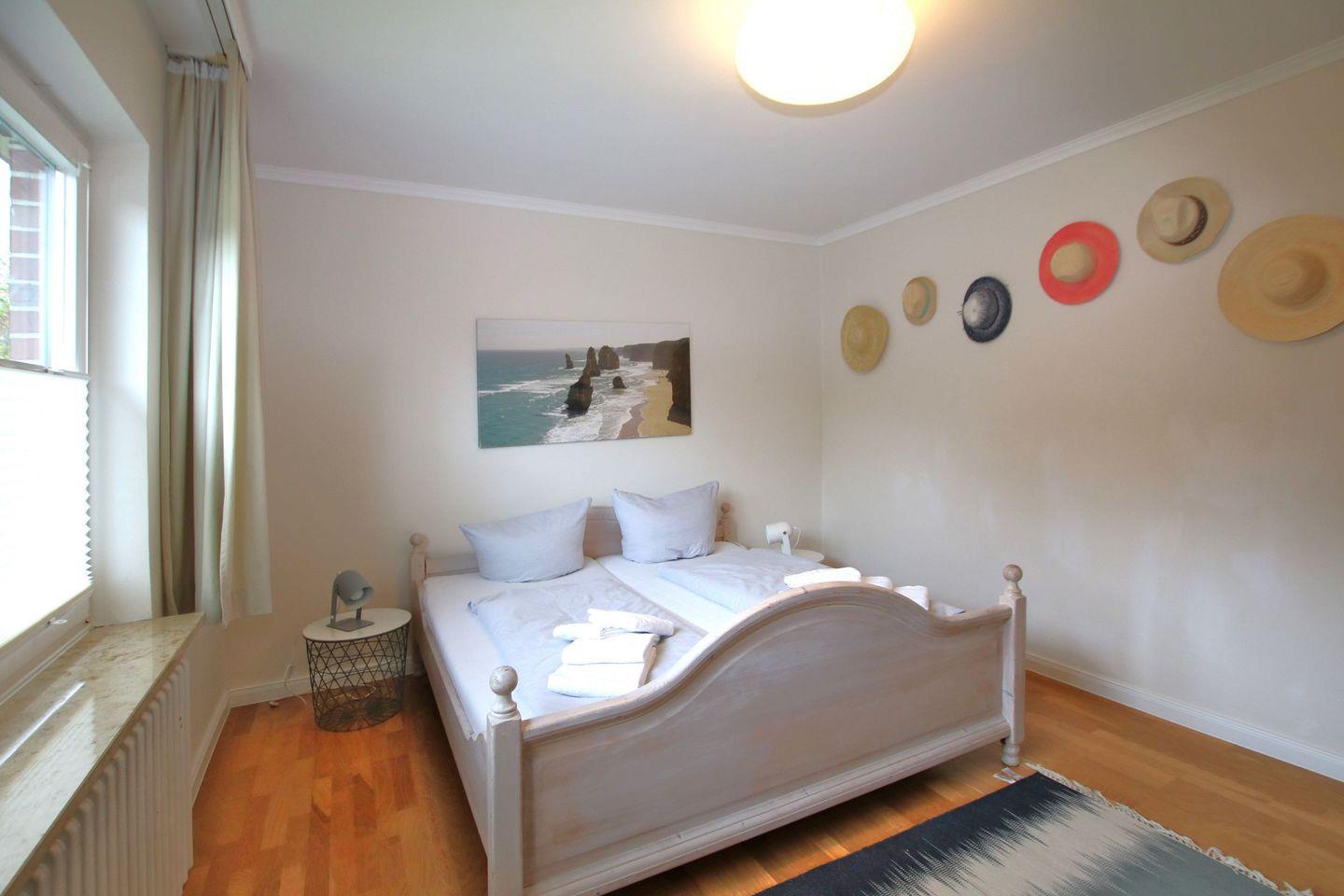 Im 1.OG befinden sich zwei weitere Schlafzimmer. Das eine mit zwei Einzelbetten, Sitzecke und Kommode und das andere mit Doppelbett (1,80x2,00m), SAT-TV(Smart-TV) und Einbauschrank. Bad 3 im 1.OG mit großer Dusche und WC.