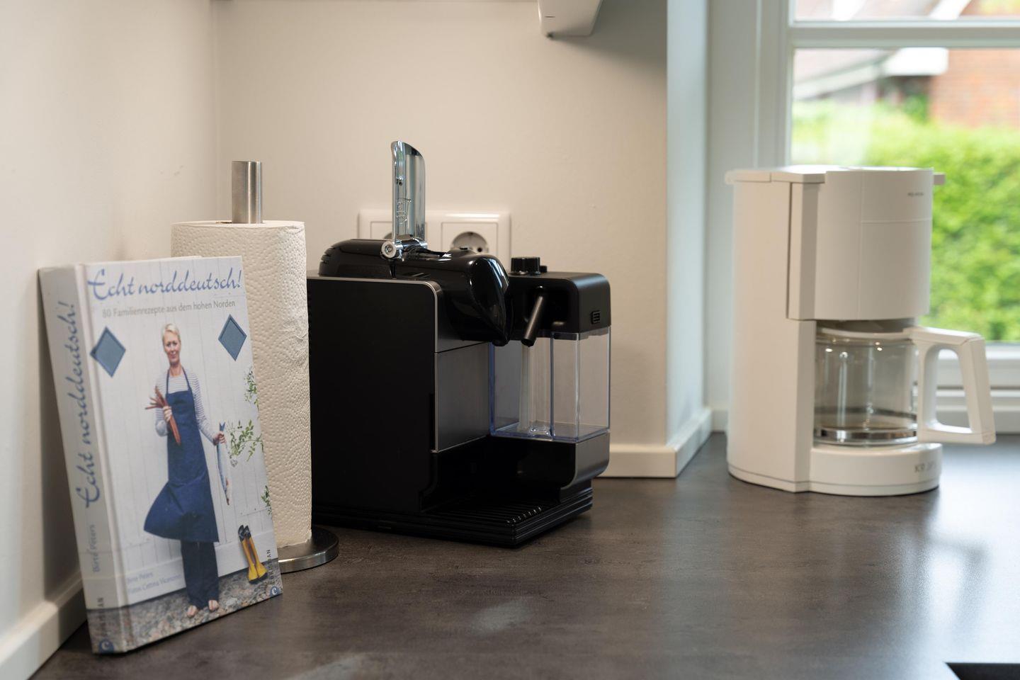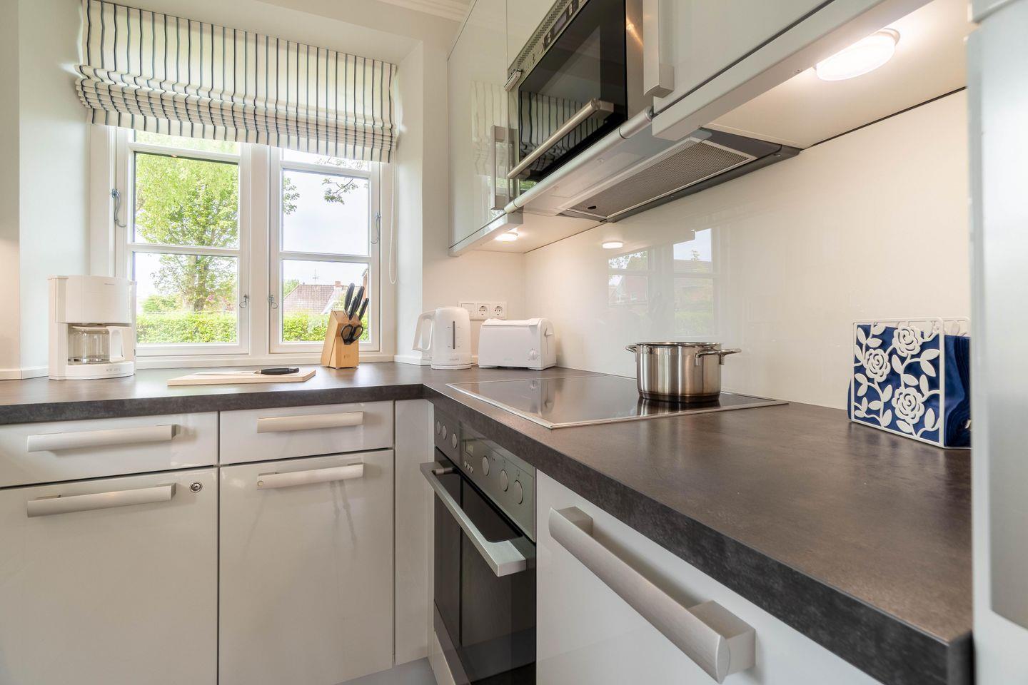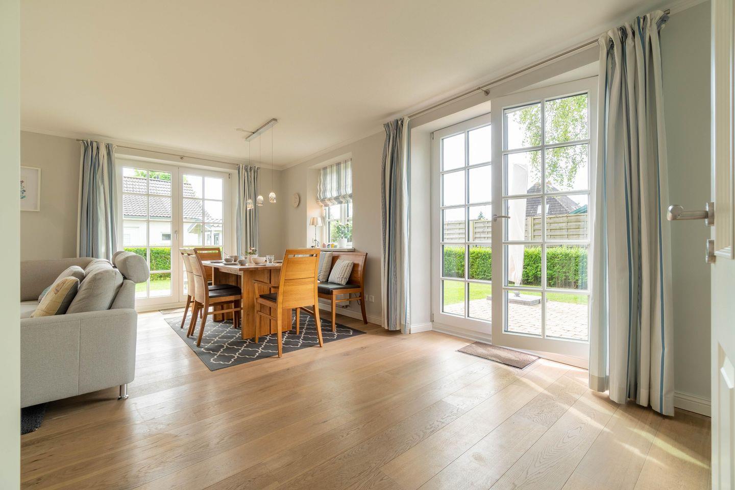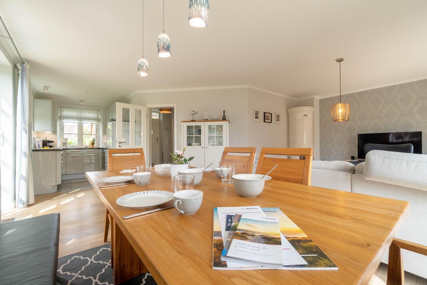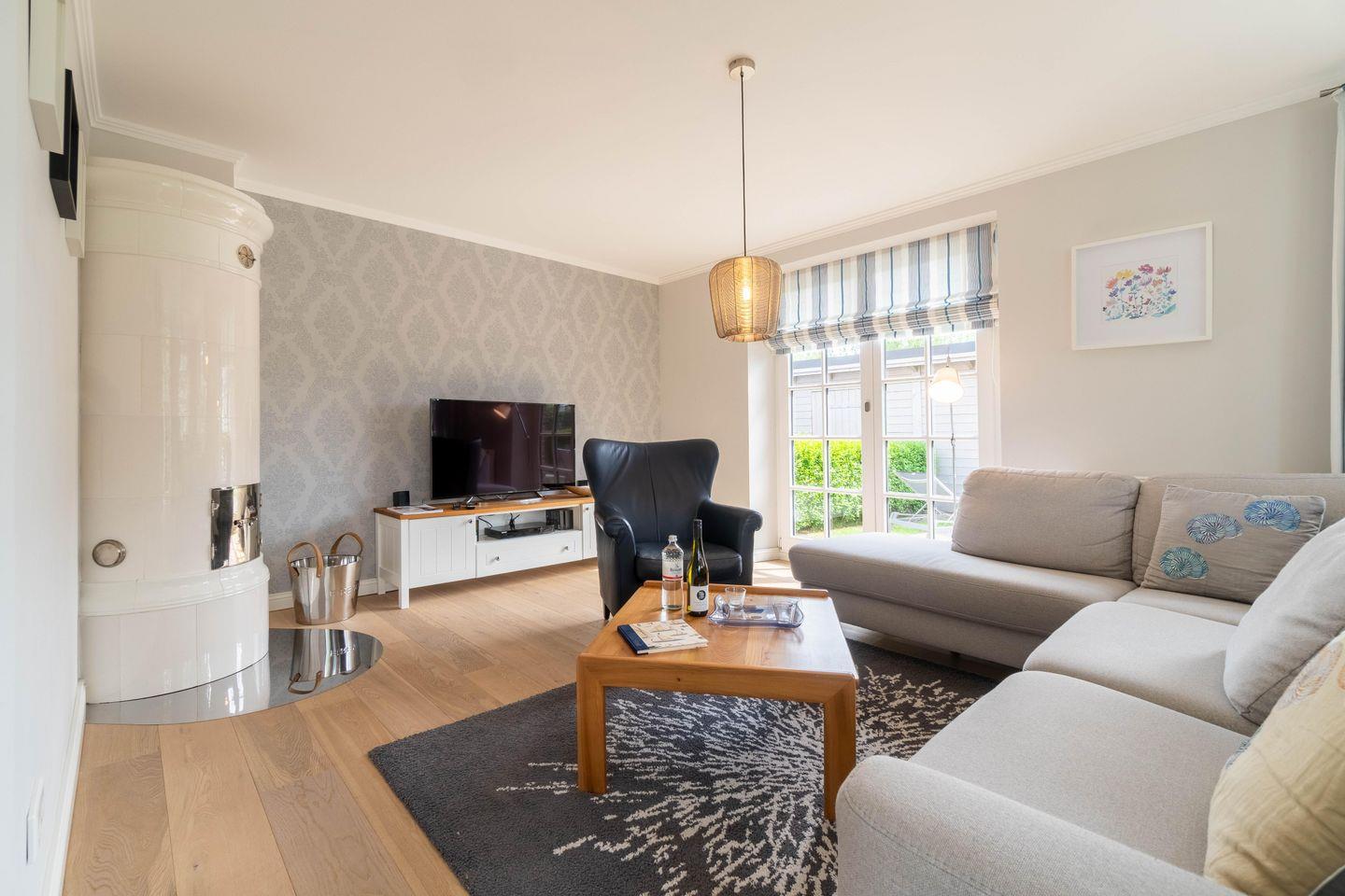Reetgedeckte Doppelhaushälfte in "friesisch-modernem" Stil mit Original Mylin-Kachelofen, hauseigener Sauna und zwei Terrassen im Garten.