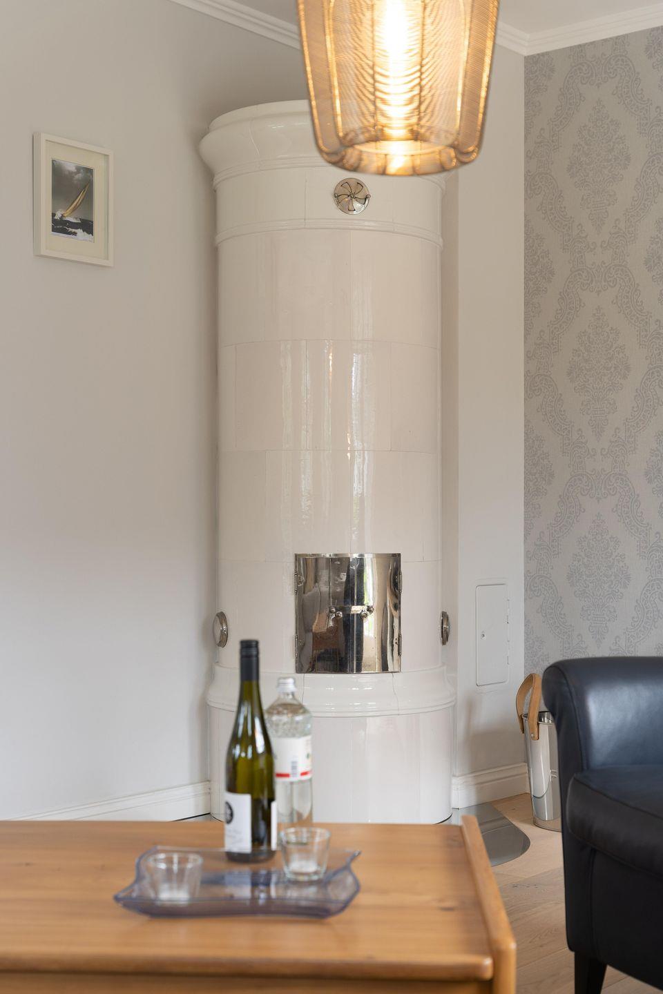 Zu den Highlights der Ferienunterkunft zählen wir u. a. den Original Mylin-Kachelofen, die hauseigene Sauna sowie die zwei Terrassen im Garten.