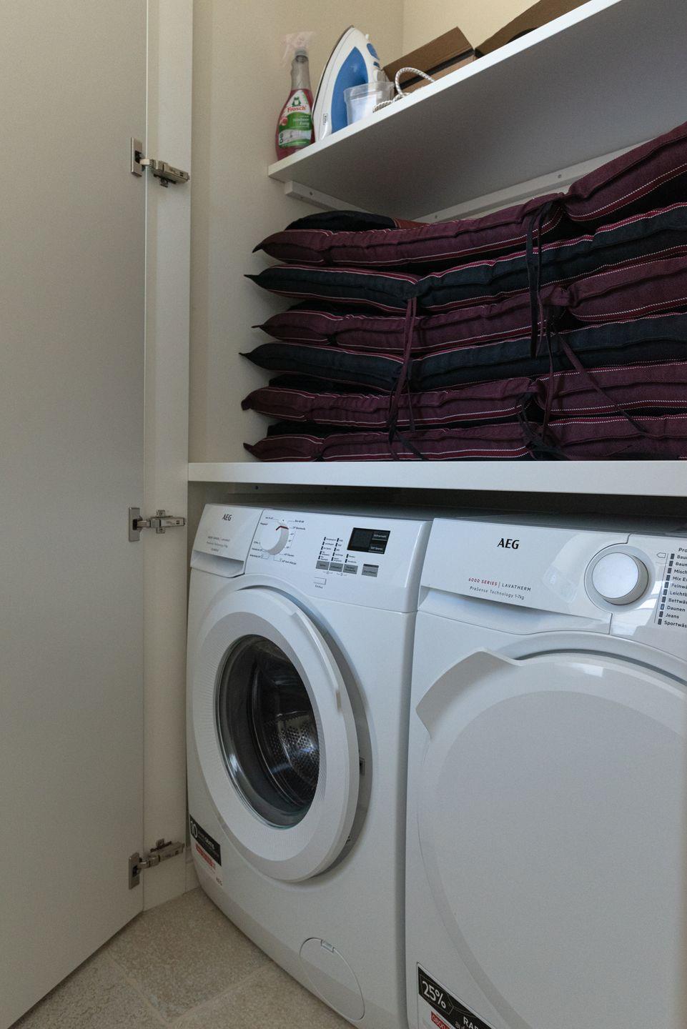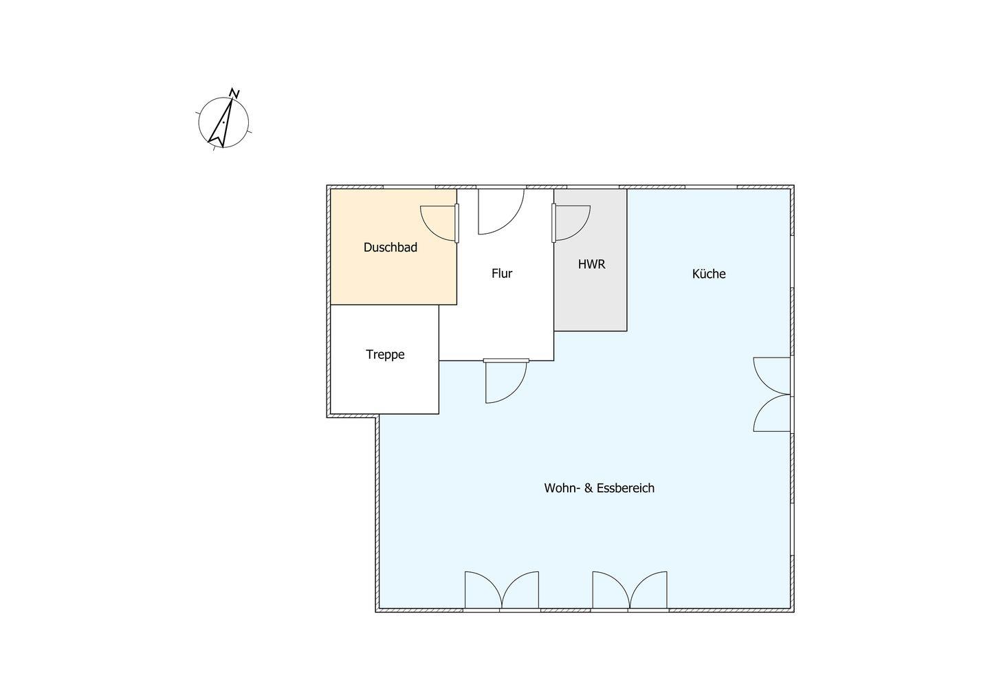 Im Erdgeschoss befinden sich der großzügige Wohn- und Essbereich mit offener Küche, sowie ein Duschbad und ein Hauswirtschaftsraum mit Waschmaschine und Trockner. Sowohl über den Wohnbereich als auch über die Küche gelangen Sie direkt auf die Terrasse und in den Garten. Der Kamin sorgt auch an kühleren Tagen für eine wohlige Atmosphäre.