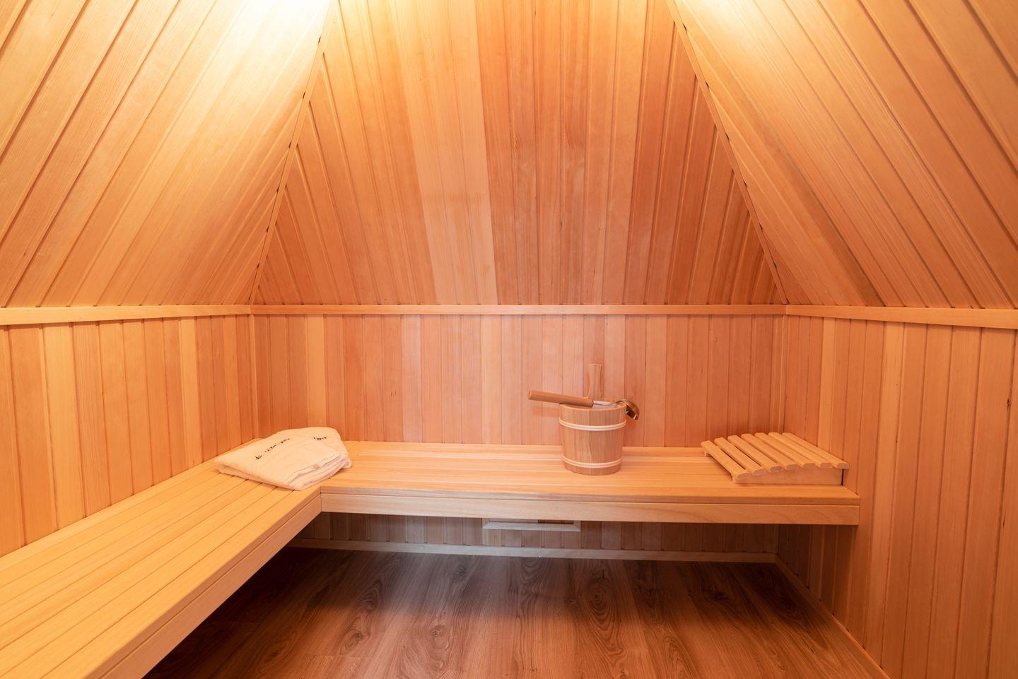 Das Dachgeschoss beherbergt die hauseigene Sauna samt Ruheraum.
